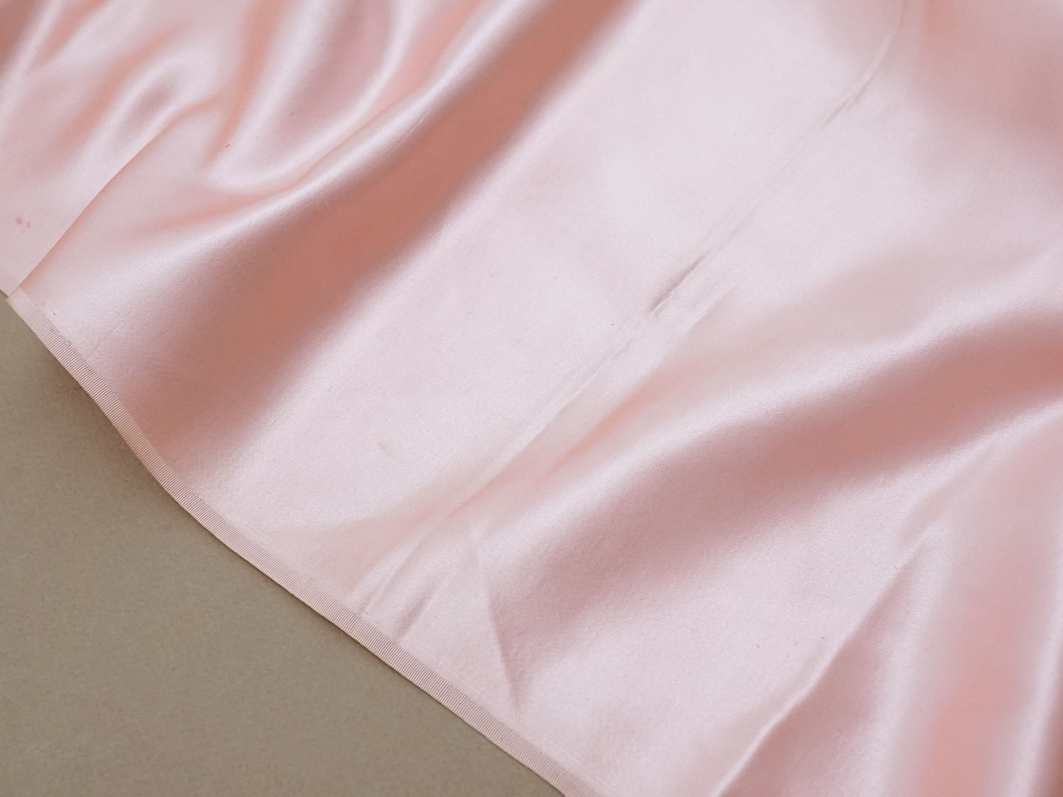 ベビーピンクのシルク製サテン生地53×99cmです。