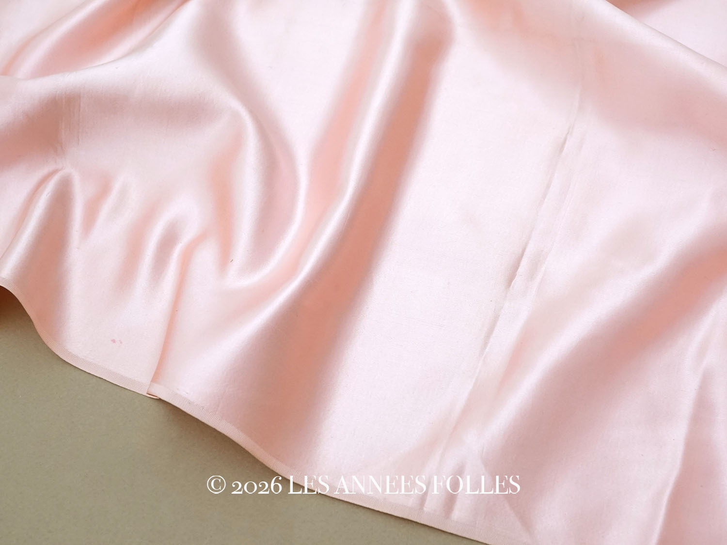 19世紀末 アンティーク シルクサテン ファブリック ベビーピンク 生地 53×99cm