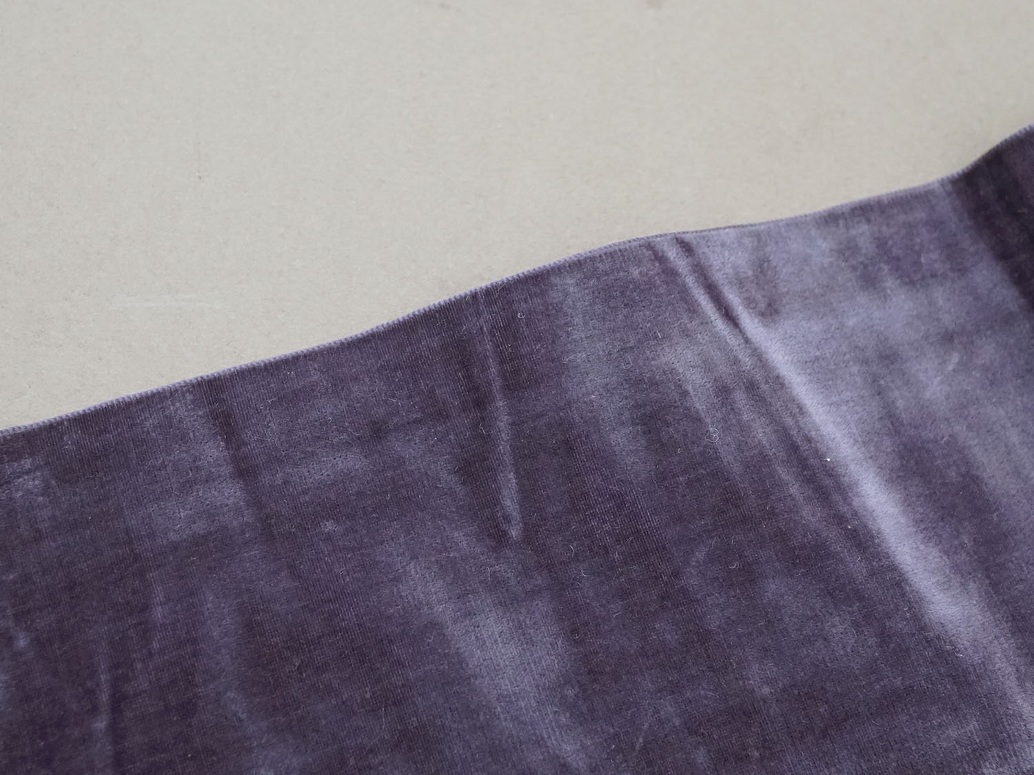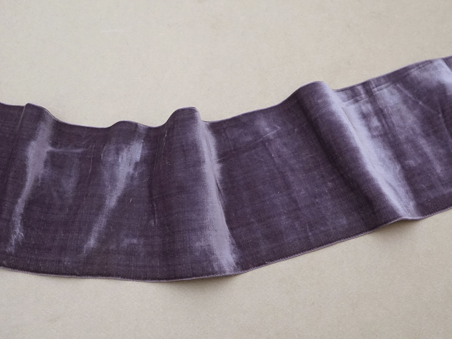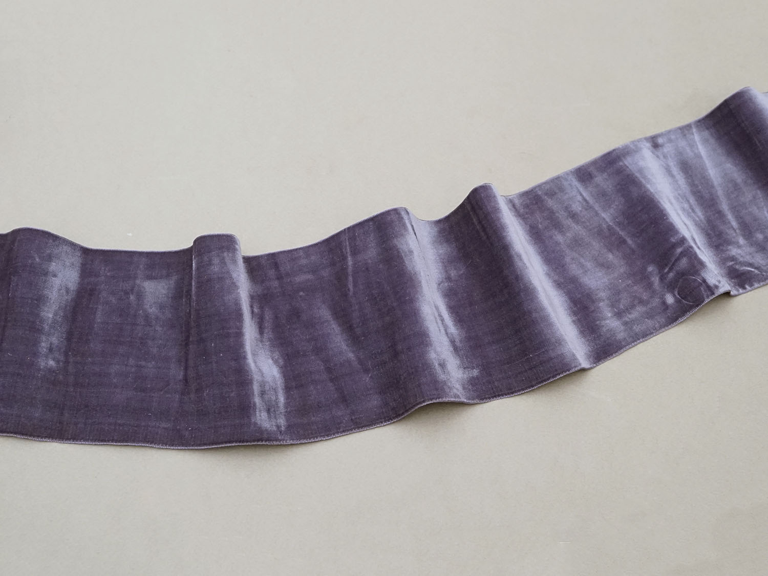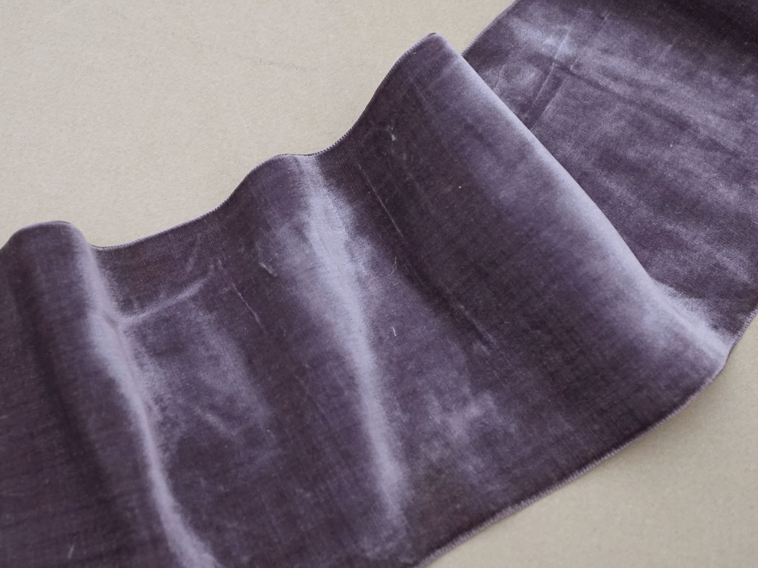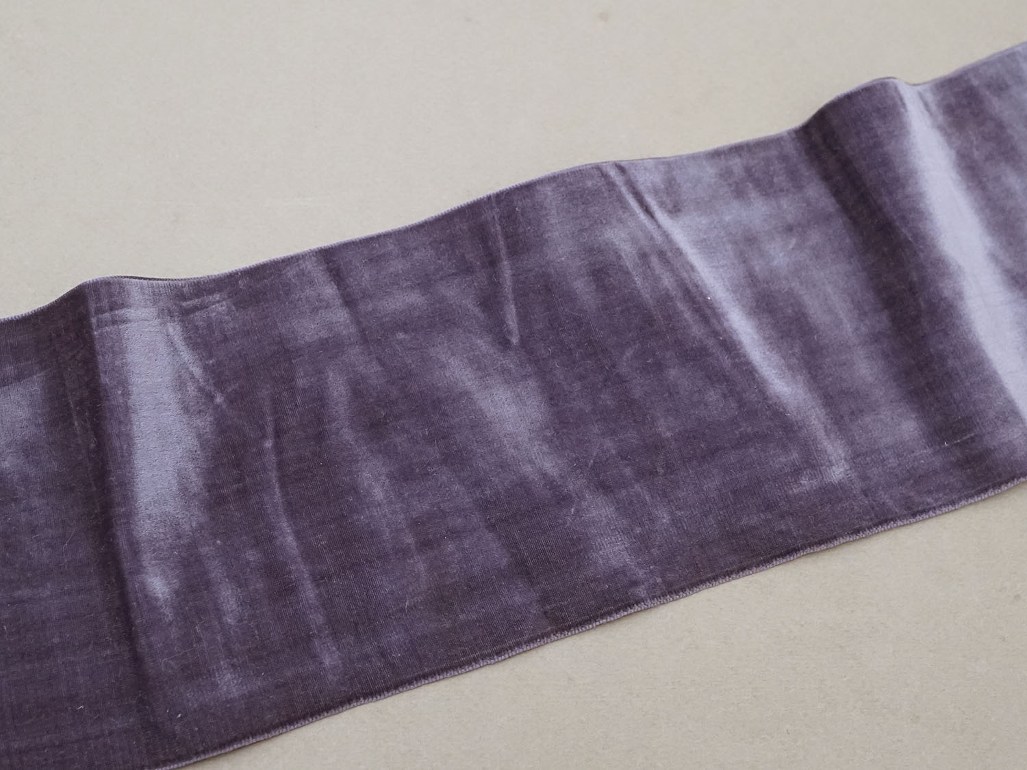 スモーキーな薄紫色のシルク製ベルベットの幅広リボン1.74mです。