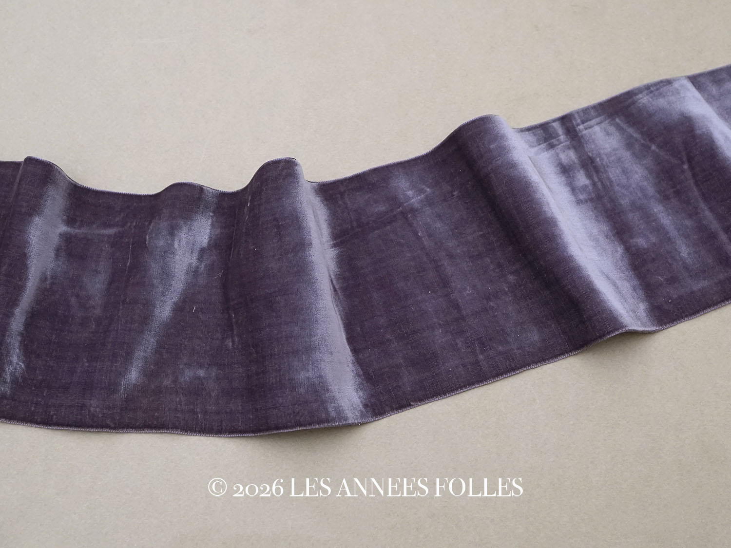 19世紀末 アンティーク シルク製 幅広 ベルベットリボン グレイッシュパープル 1.74m 幅10.8cm