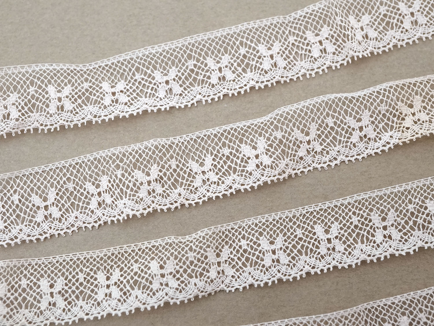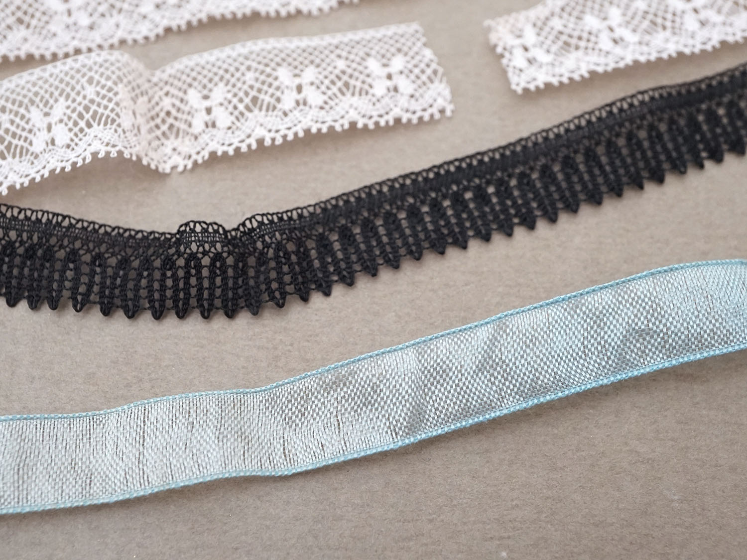 リボン刺繍様の3mm幅のリボンには、シミが見られます。