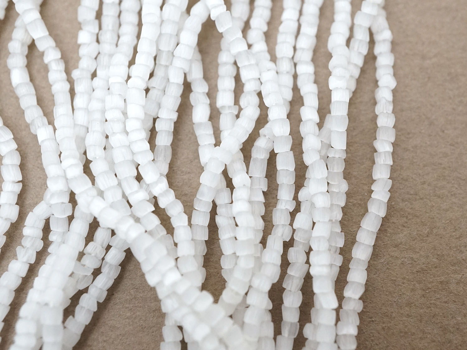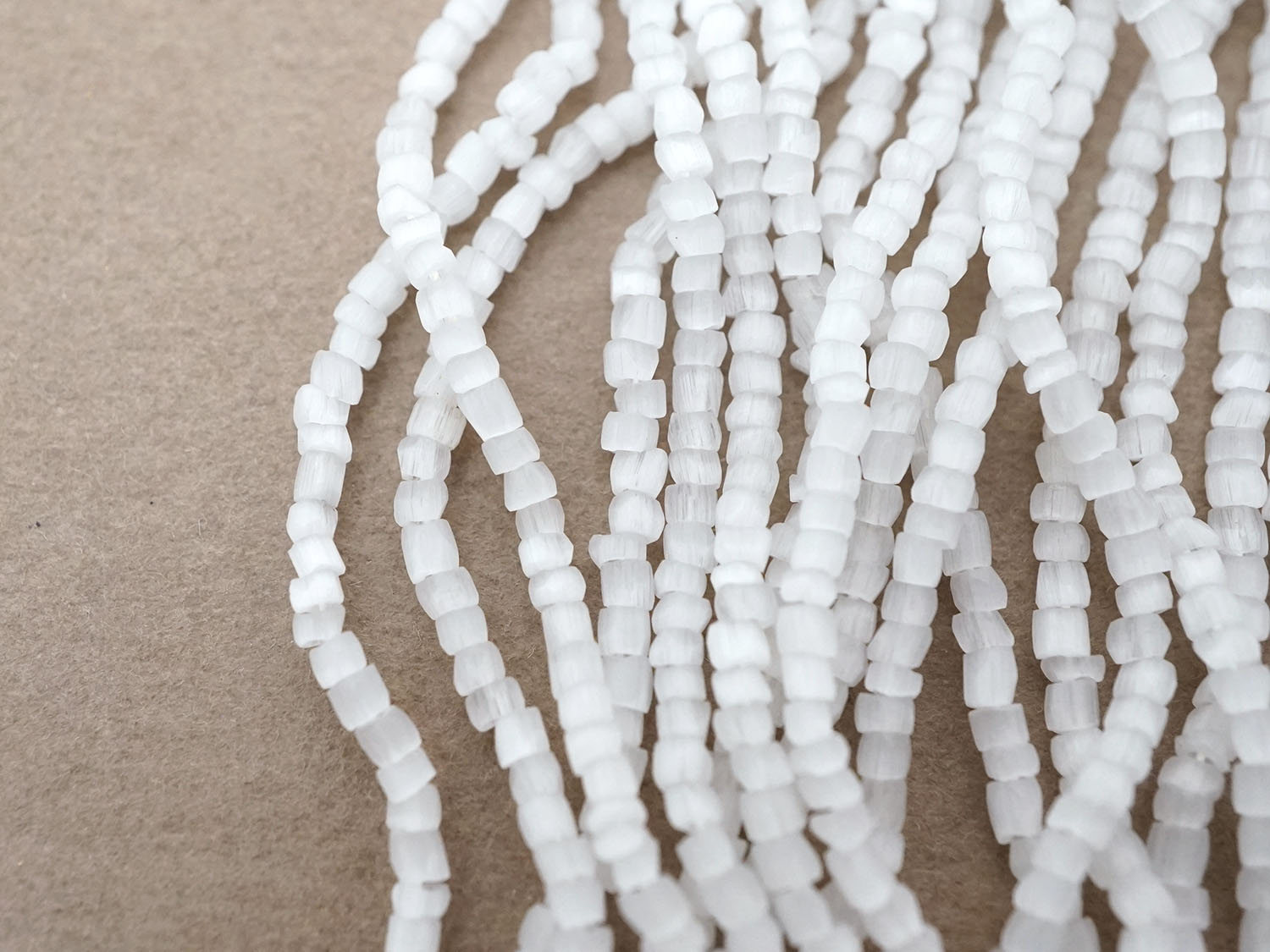 ビーズの縁は少しカットされ丸みのあるフォルムで、サイズは不揃いです。