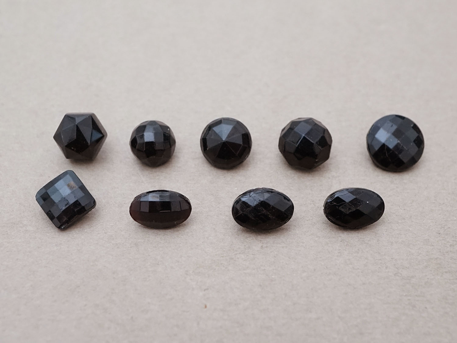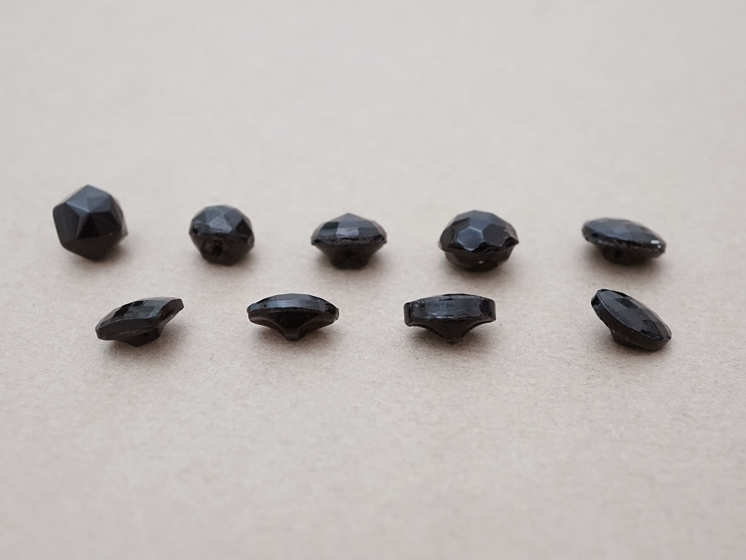 アンティーク フレンチジェットのボタン 8.5〜11mm 9ピースのセット黒 ガラスボタン