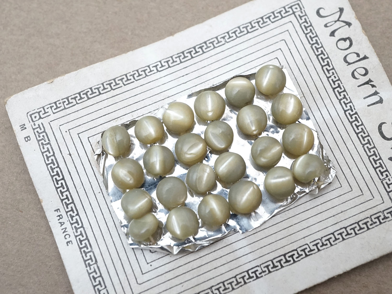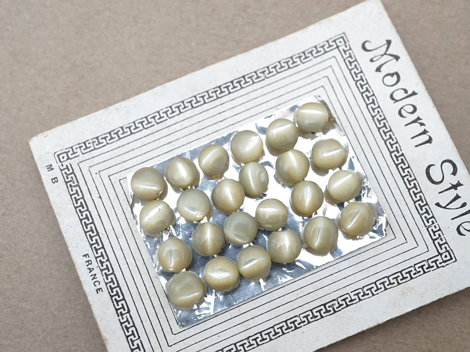 アンティーク マザーオブパール製 極小 ボタン 5mm 24ピース シェルボタン 枯草色 (淡いカーキ)