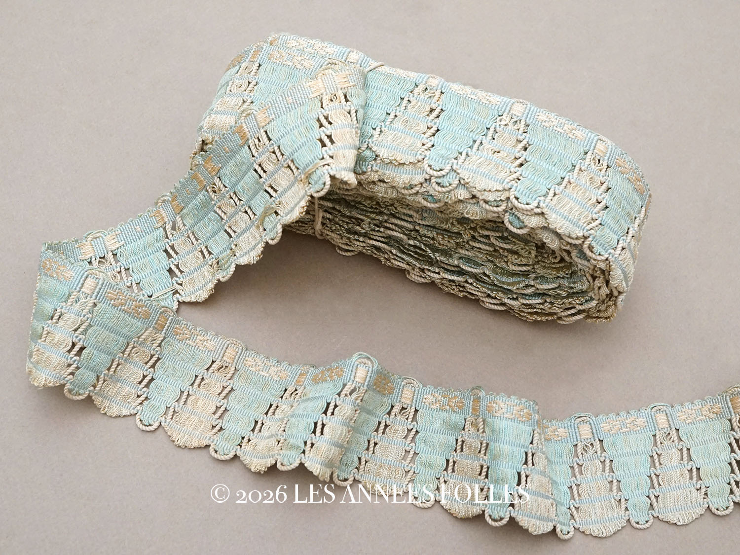*蚤の市セット*19世紀末 アンティーク パスマントリー 淡いブルー&オフホワイト