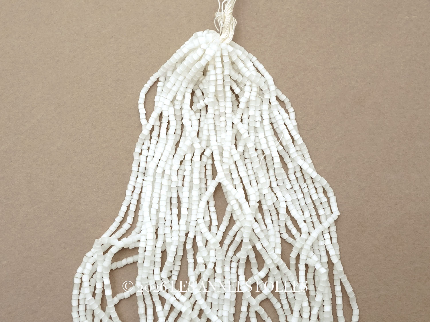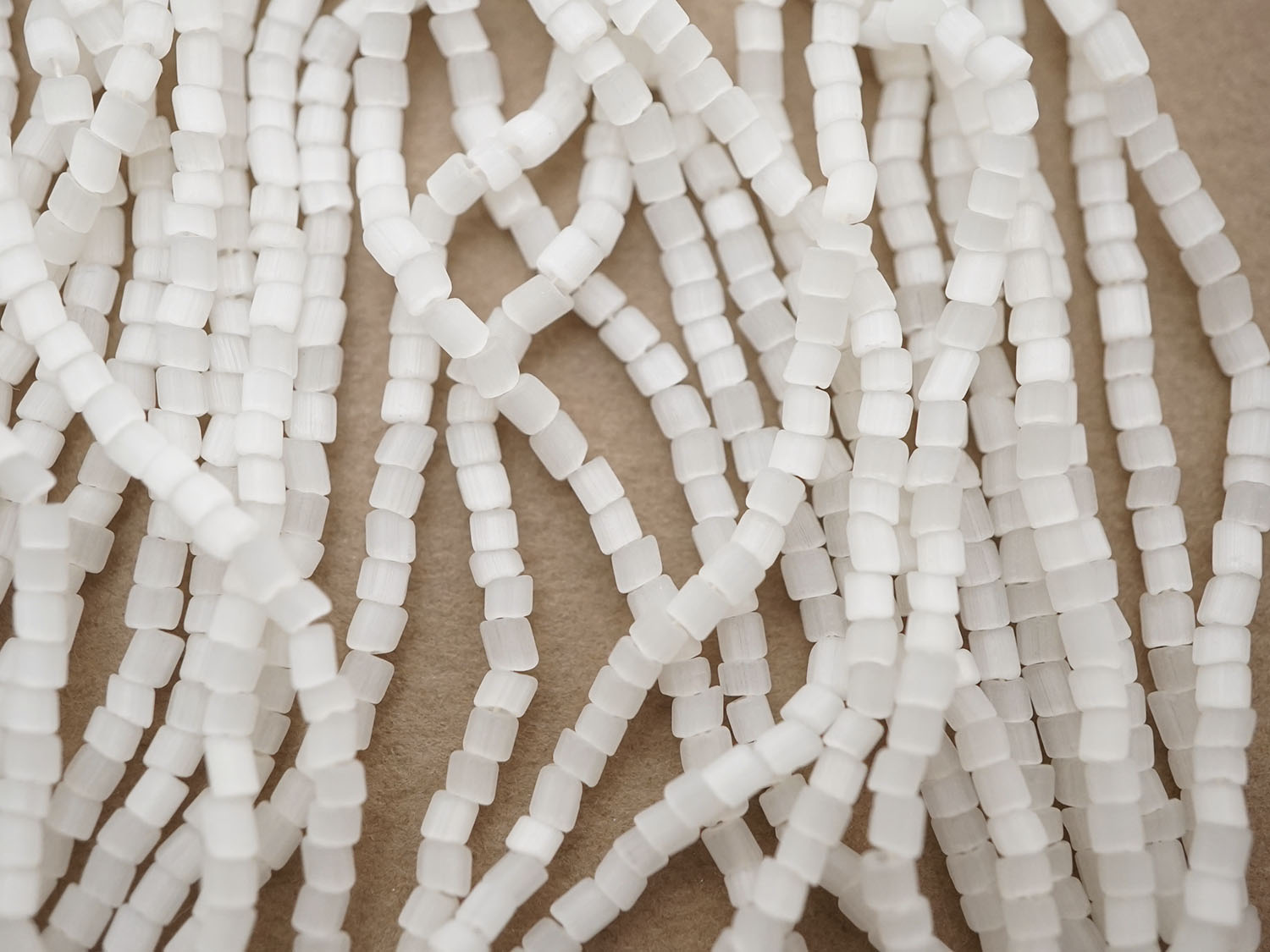 ガラス製でオグホワイトのサティネビーズ57gです。