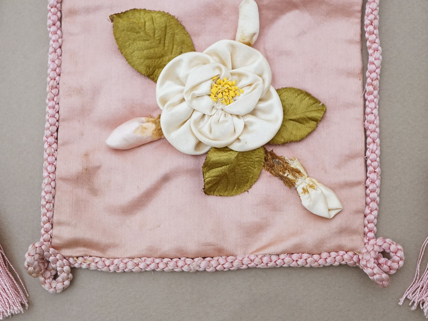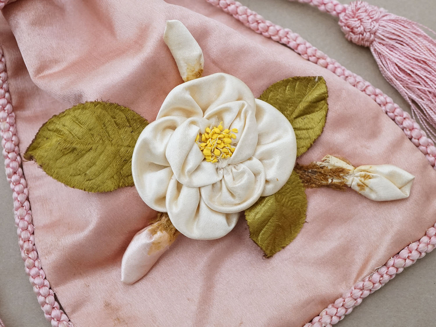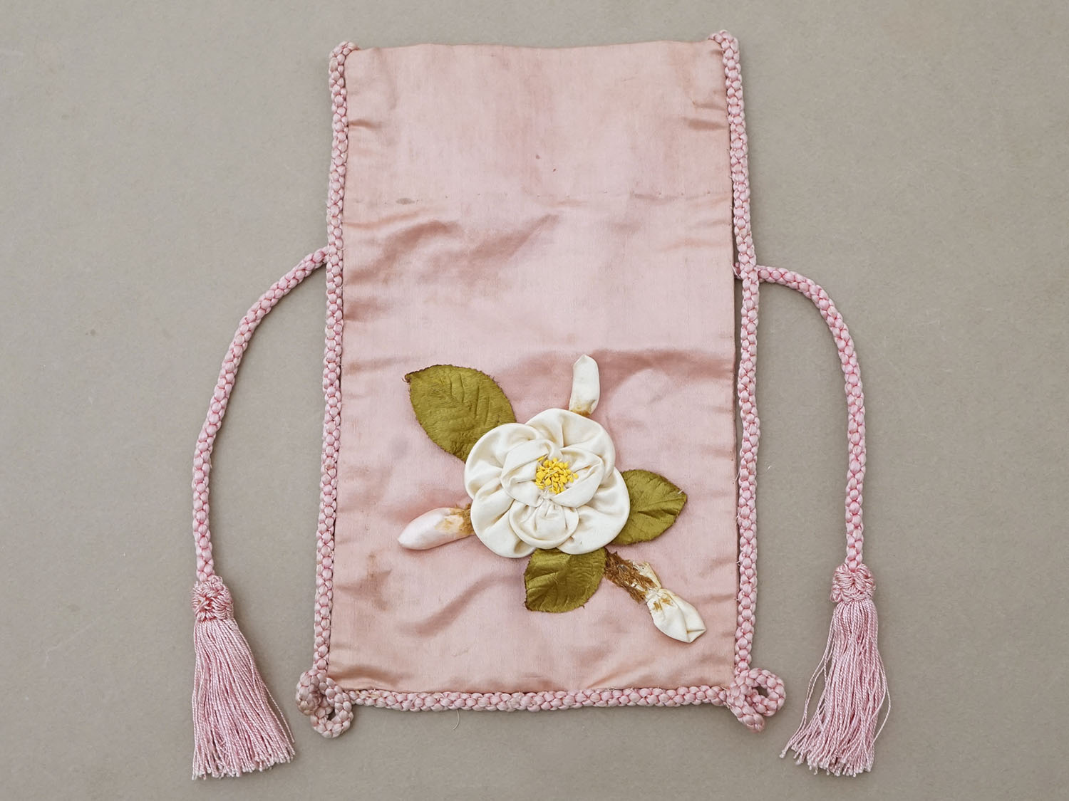 アンティーク ロココモチーフ付 シルク製 お菓子袋 オモニエール オールドローズ