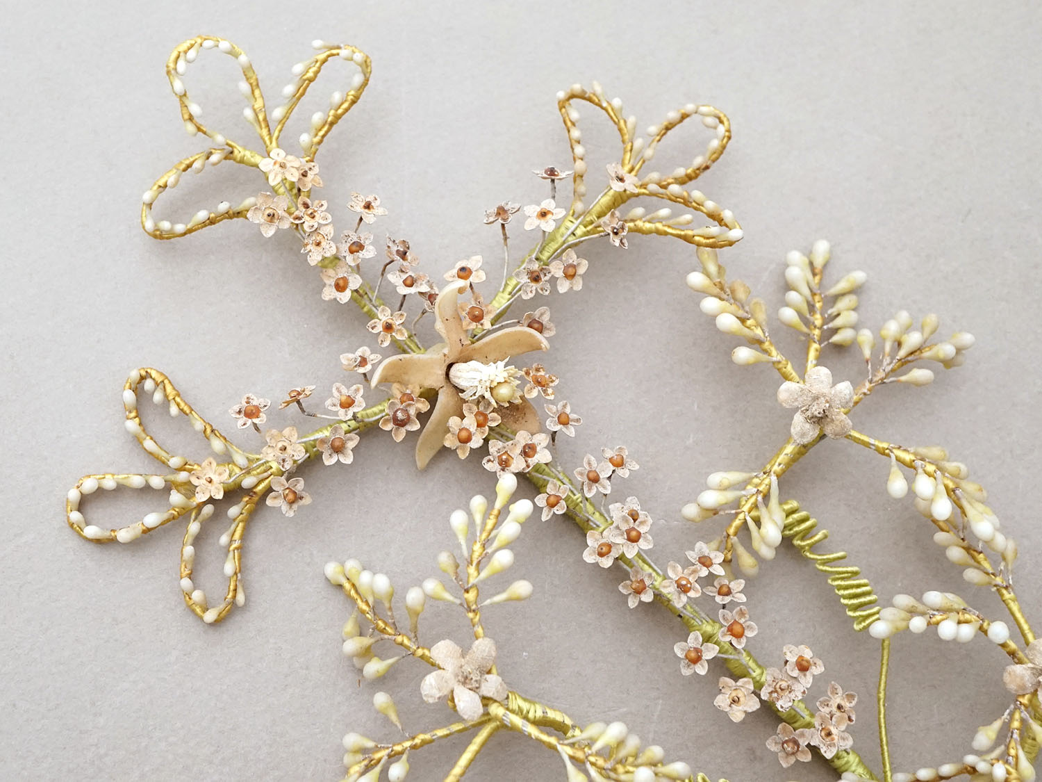 小さな花の中心の茶色のパーツが取れているものが数点見られます。