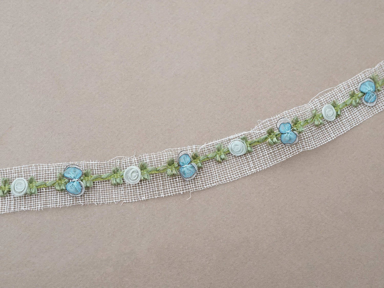 アンティーク シルク製 薔薇のロココトリム パウダーブルー&サックスブルー ロココリボン [AM16096]