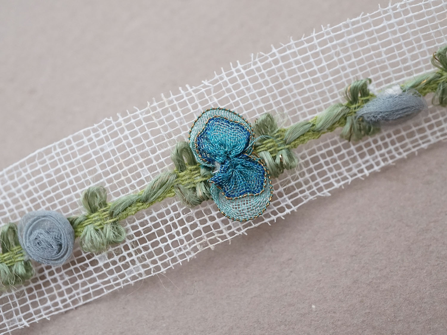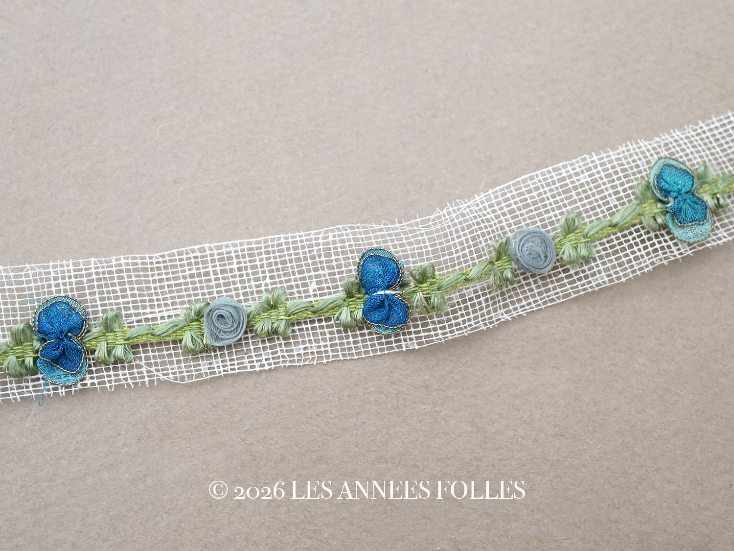 アンティーク シルク製 薔薇のロココトリム ブルーグレイ&コバルトブルー ロココリボン [AM16097]