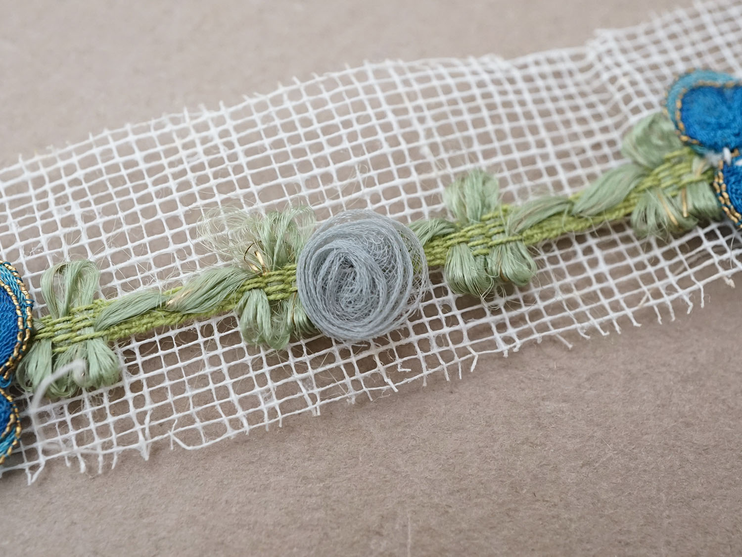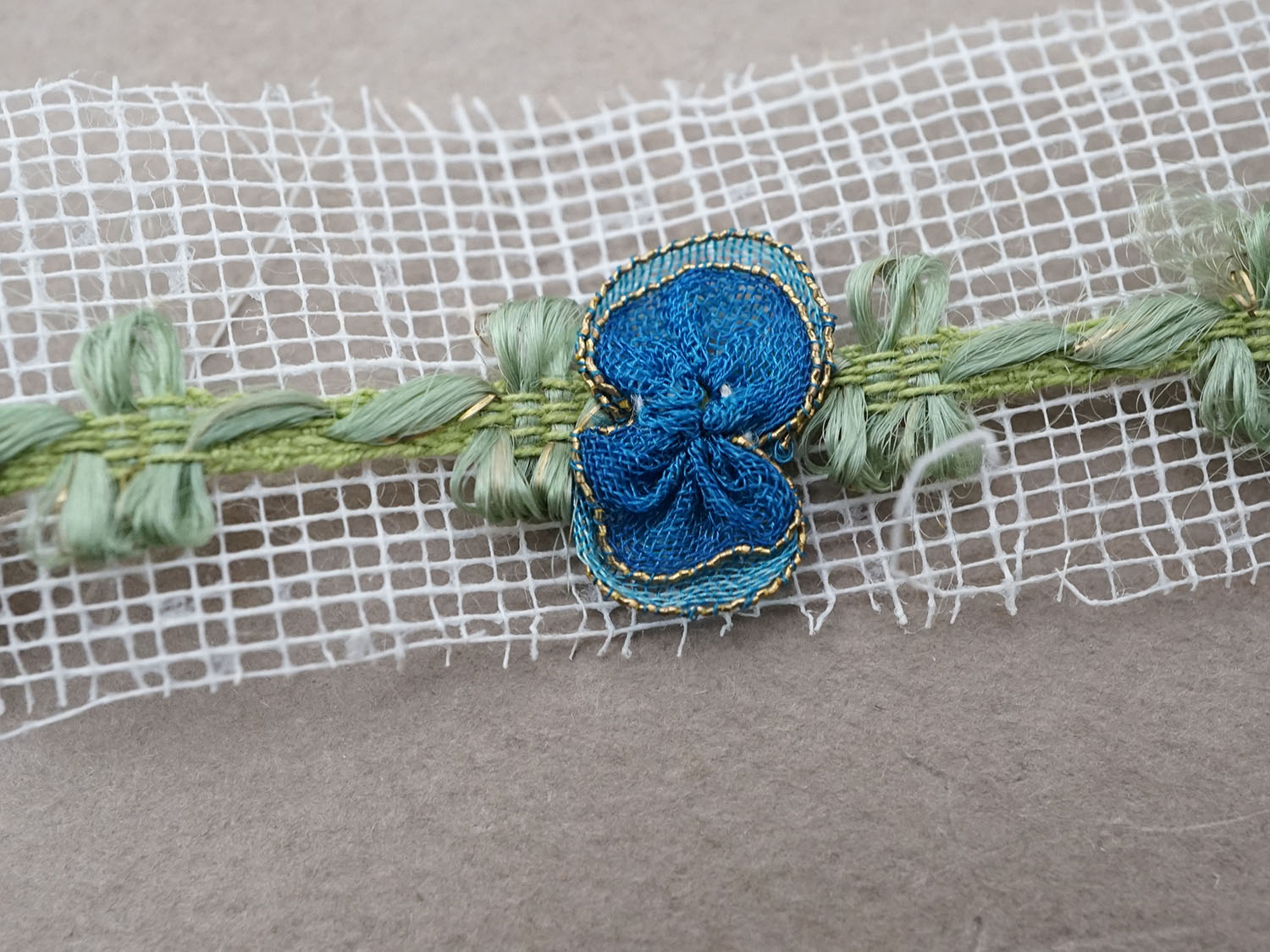 アンティーク シルク製 薔薇のロココトリム ブルーグレイ&コバルトブルー ロココリボン