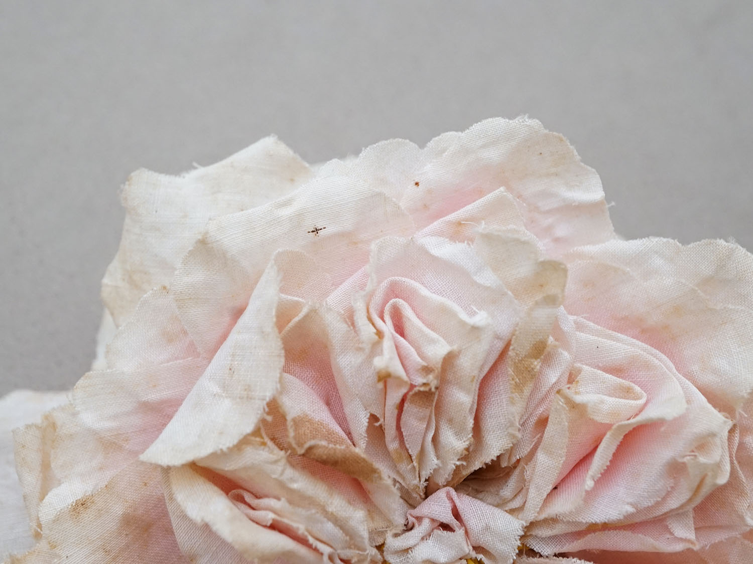 1900年頃 アンティーク薔薇の大きな布花 パウダーピンク クウォーターロゼット咲き
