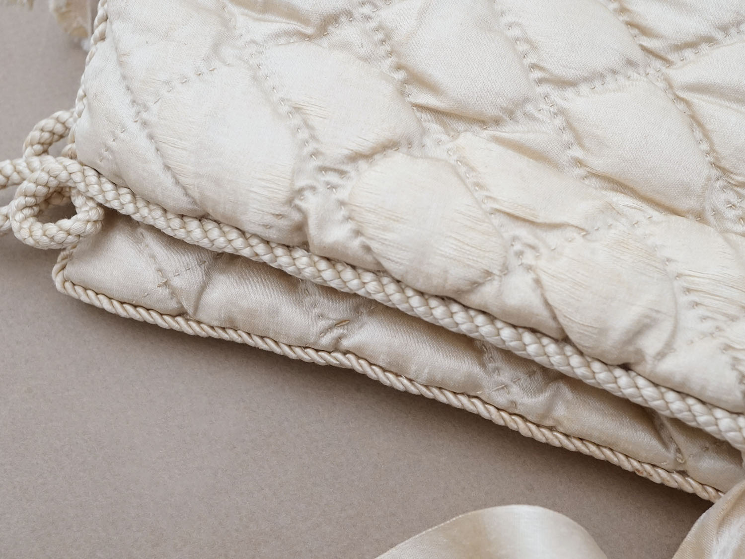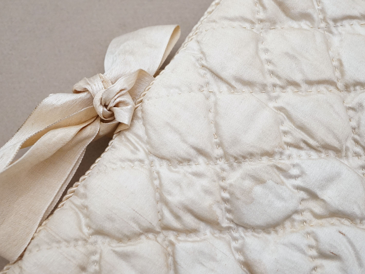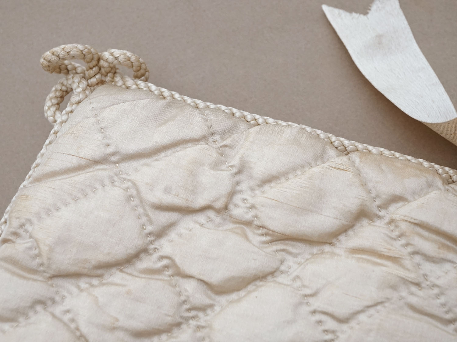 アンティーク シルク製 ハンキーケース 水色のモノグラム刺繍入り エクリュ ハンカチ用ポシェット