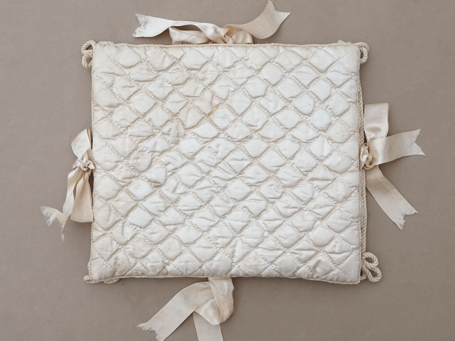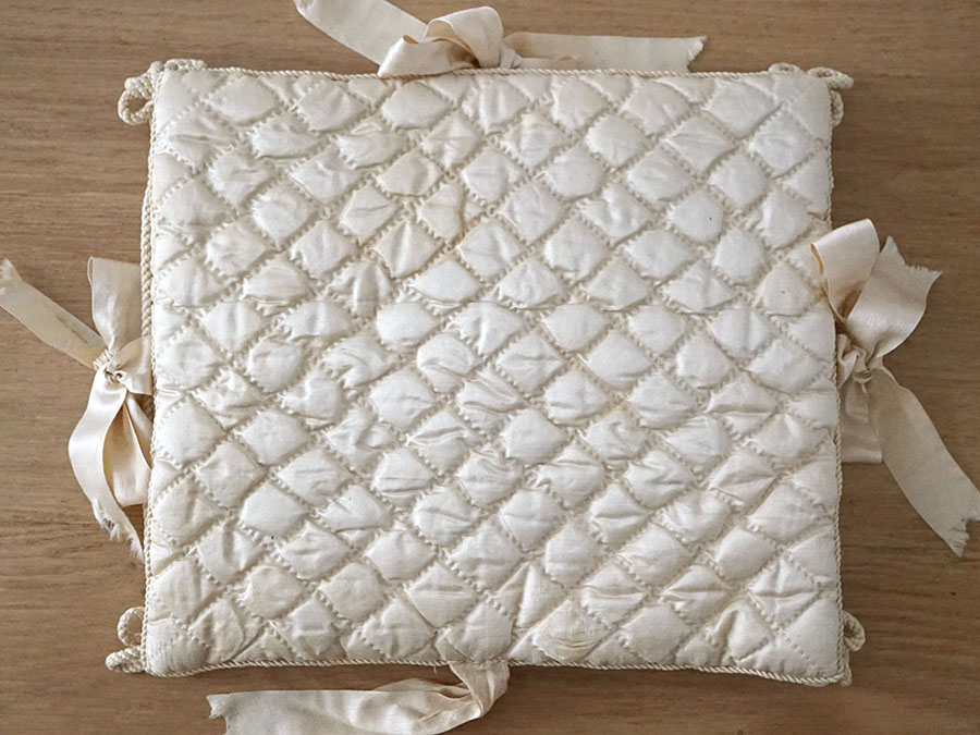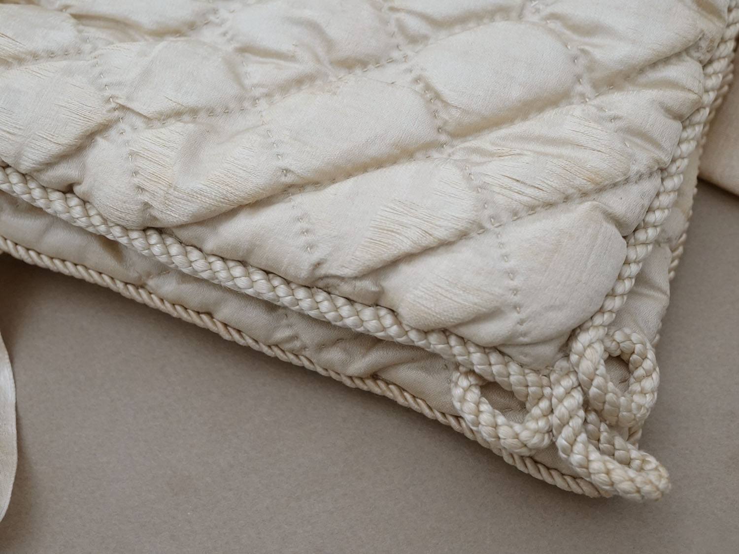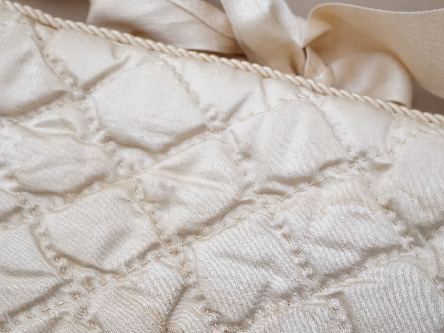 アンティーク シルク製 ハンキーケース 水色のモノグラム刺繍入り エクリュ ハンカチ用ポシェット