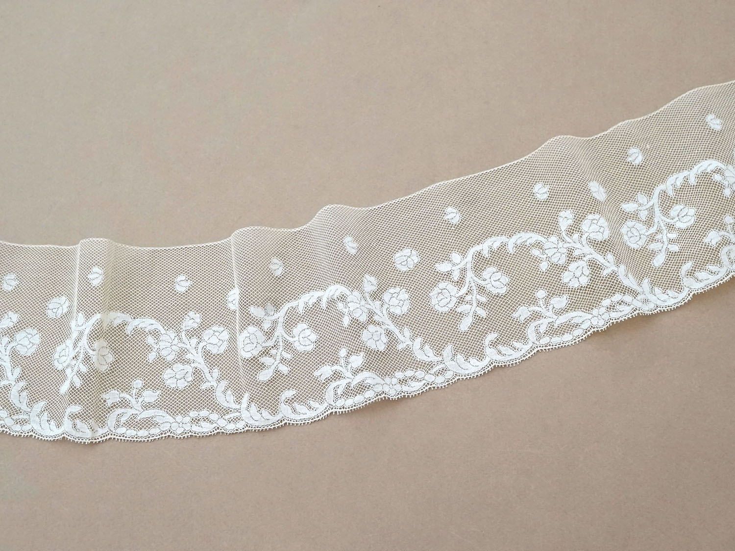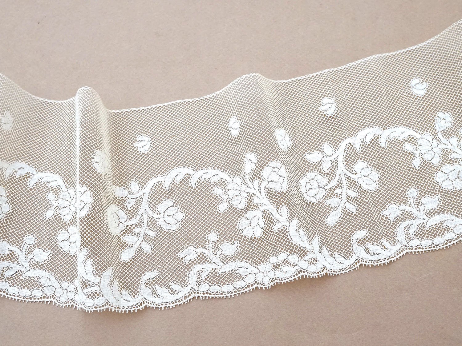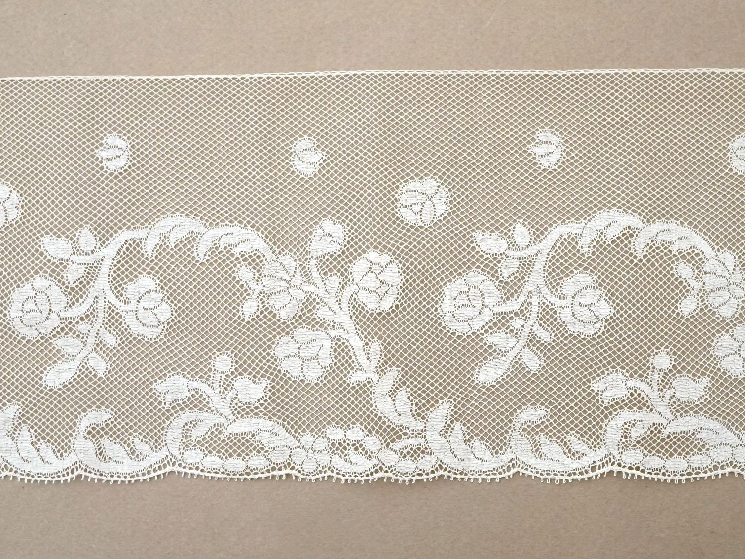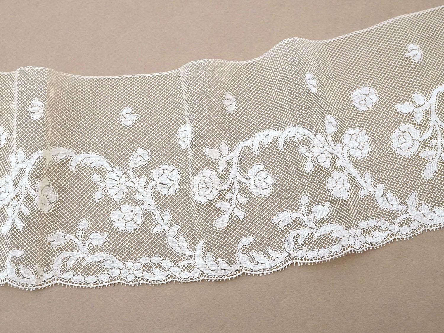 19世紀 アンティーク 手編みの ヴァランシエンヌレース 花模様 幅10.6cm