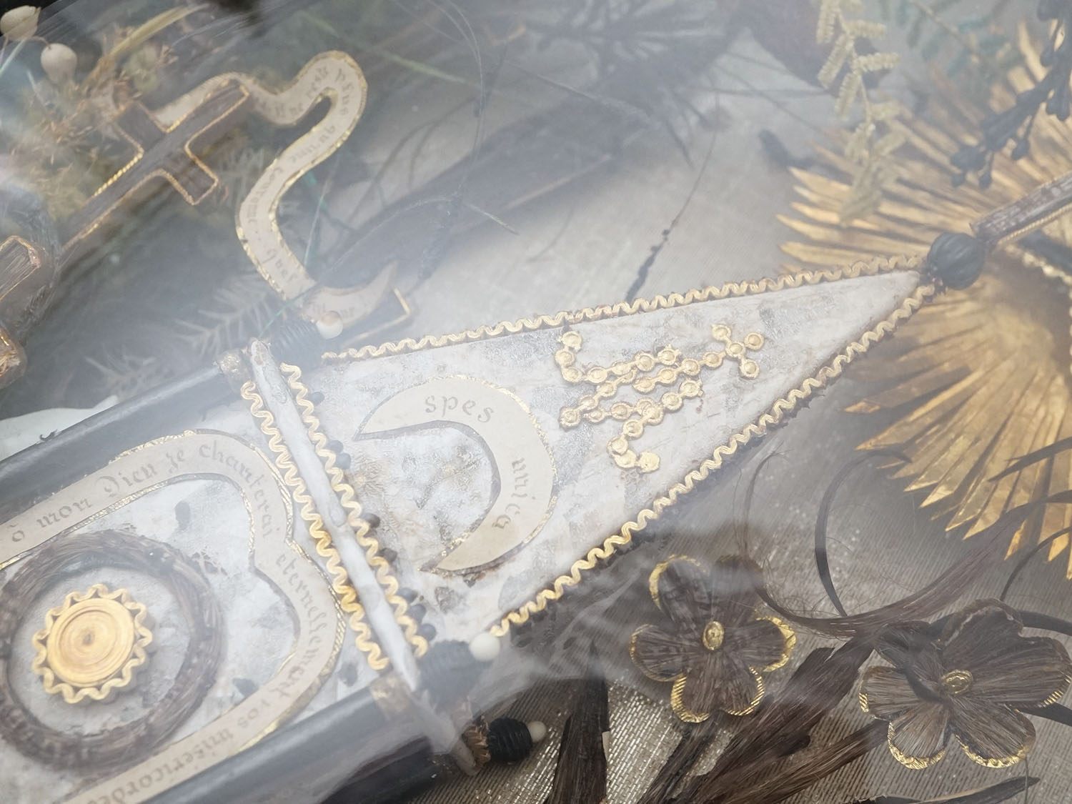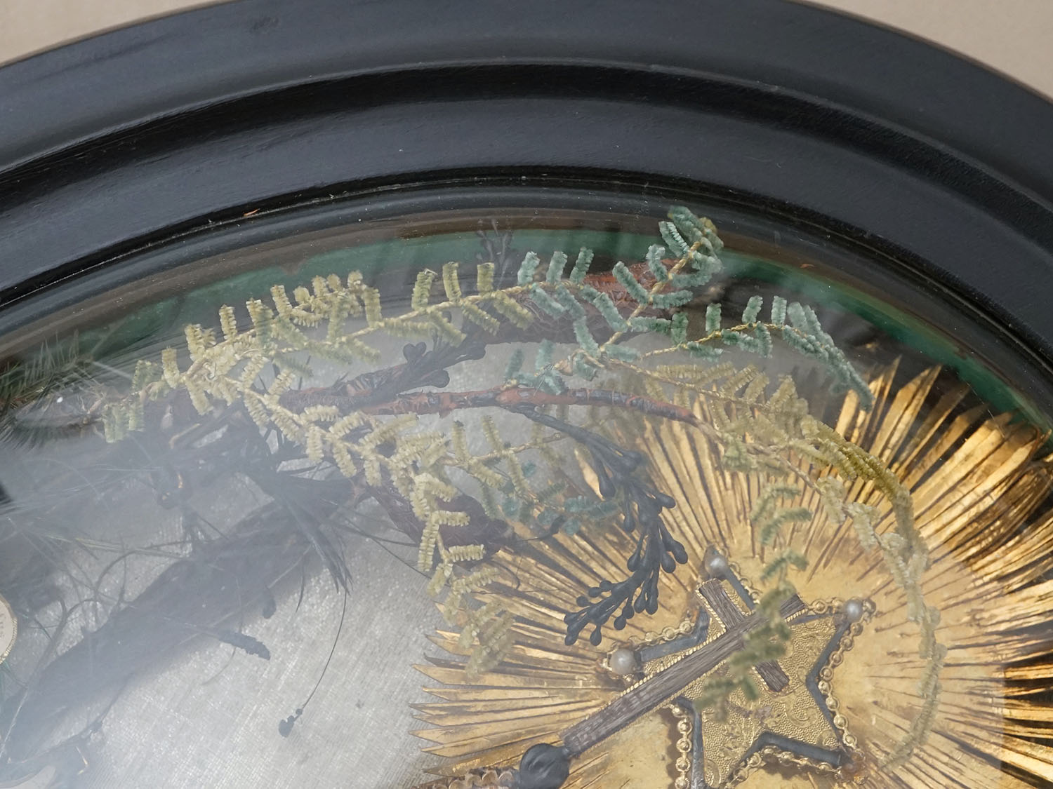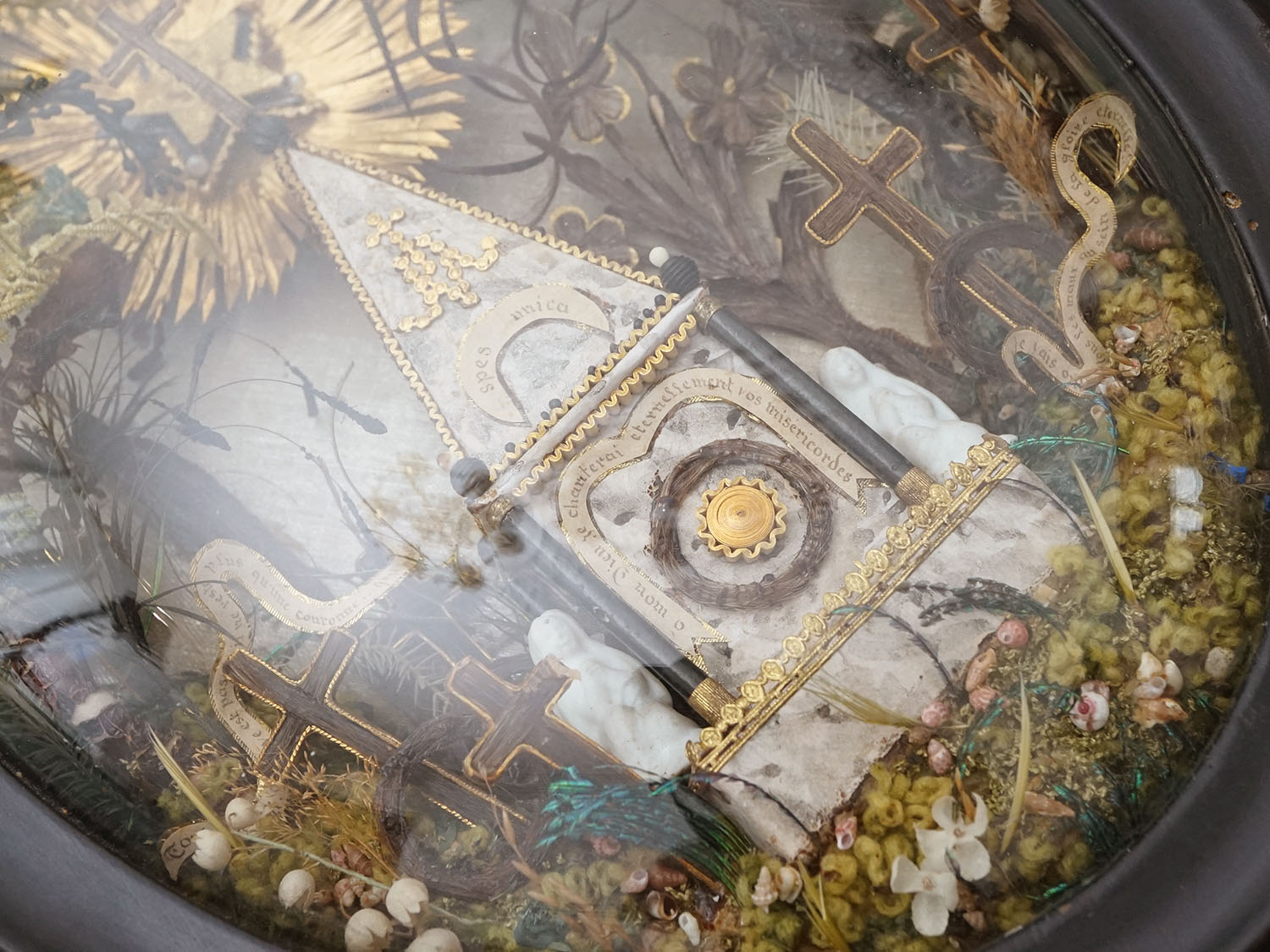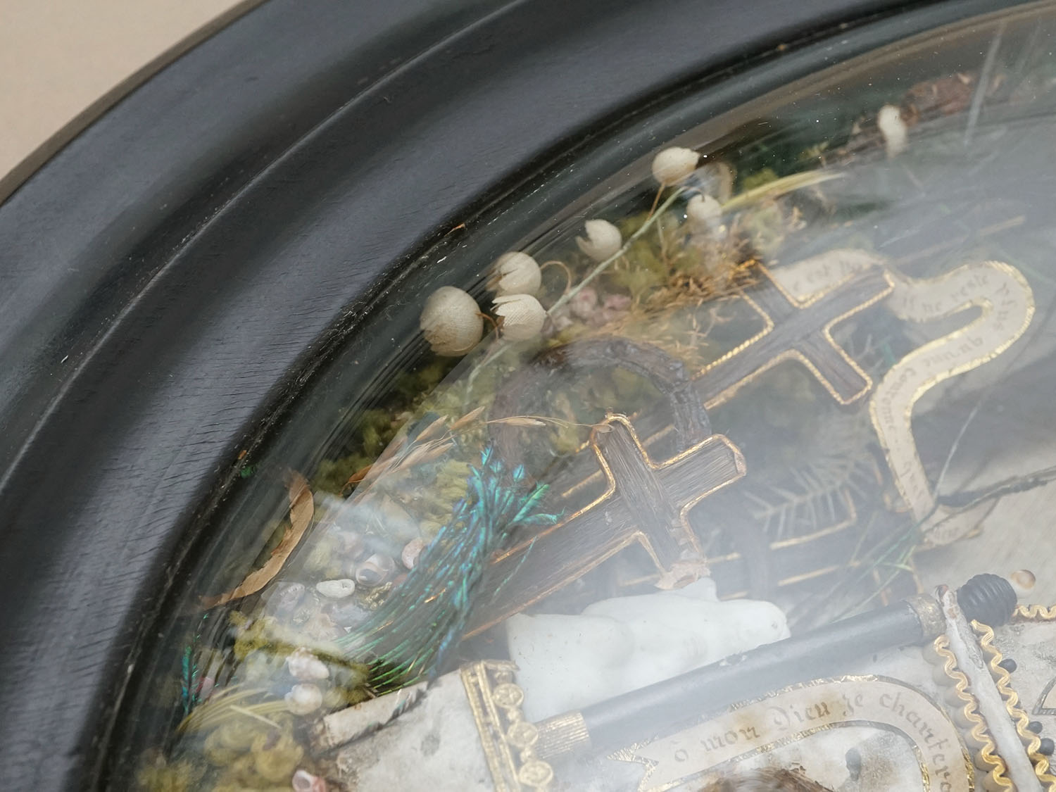 19世紀 アンティーク ルリケール 大きなガラスドーム 遺物 44.6×35cm