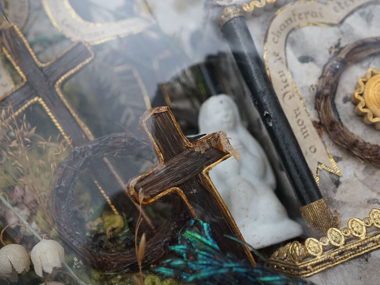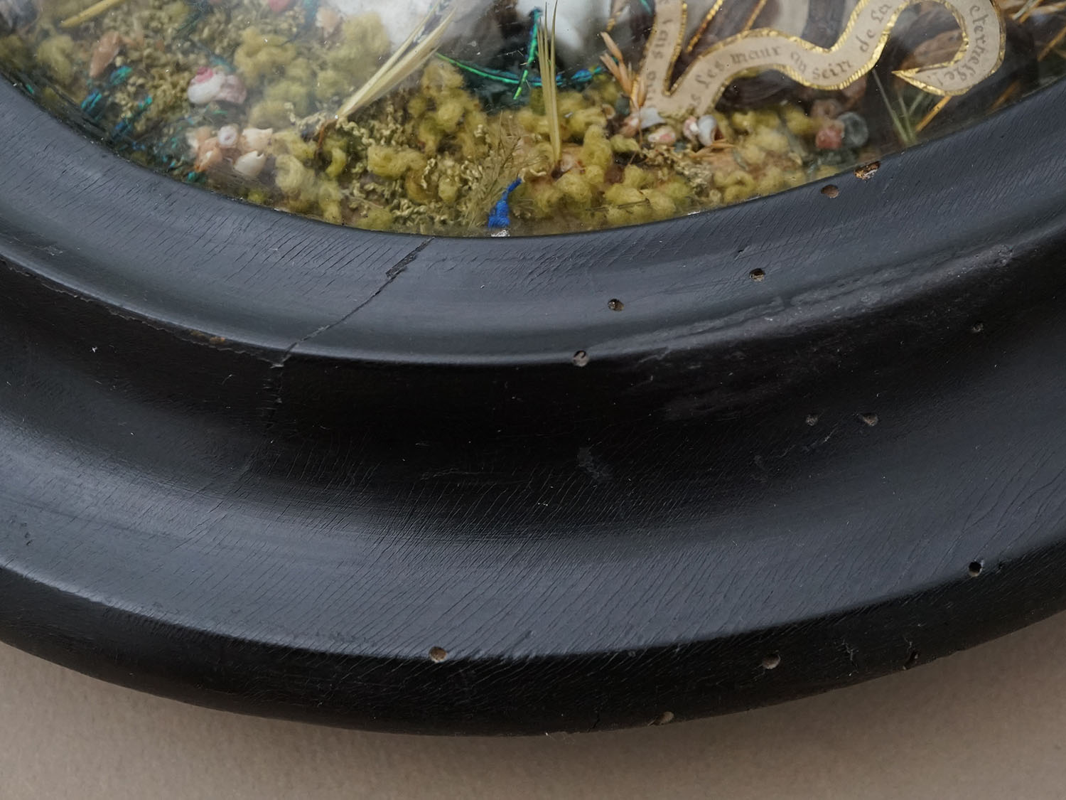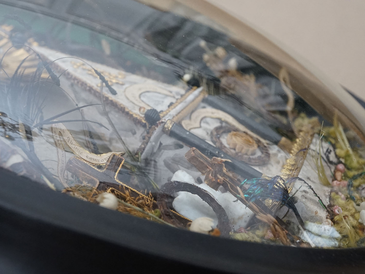 19世紀 アンティーク ルリケール 大きなガラスドーム 遺物 44.6×35cm