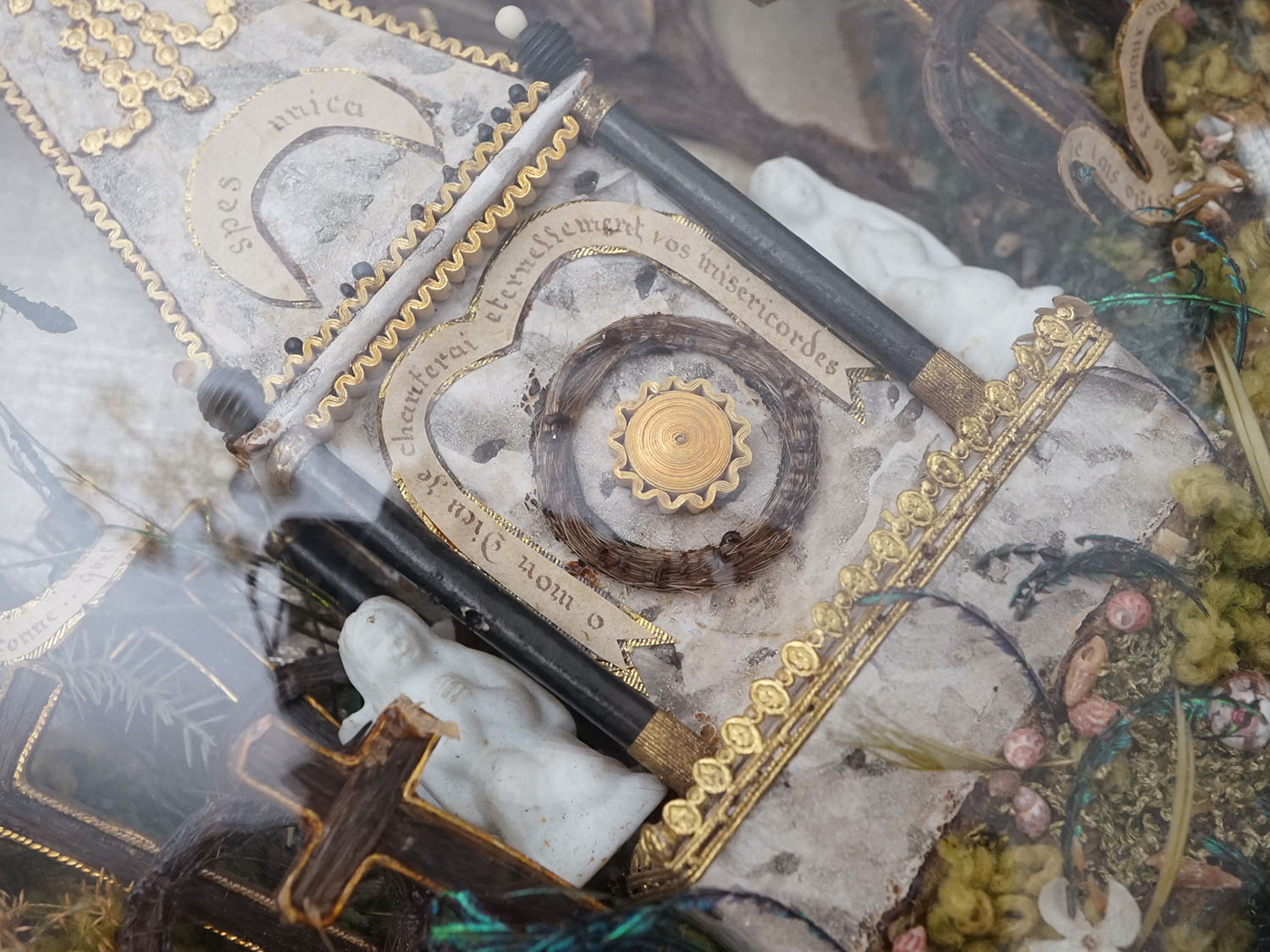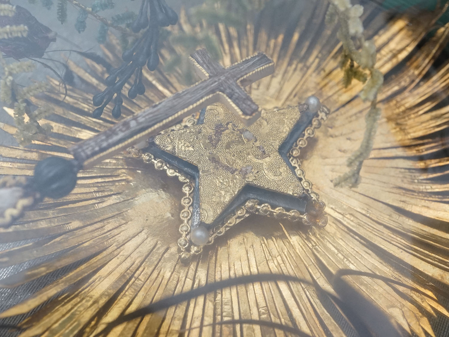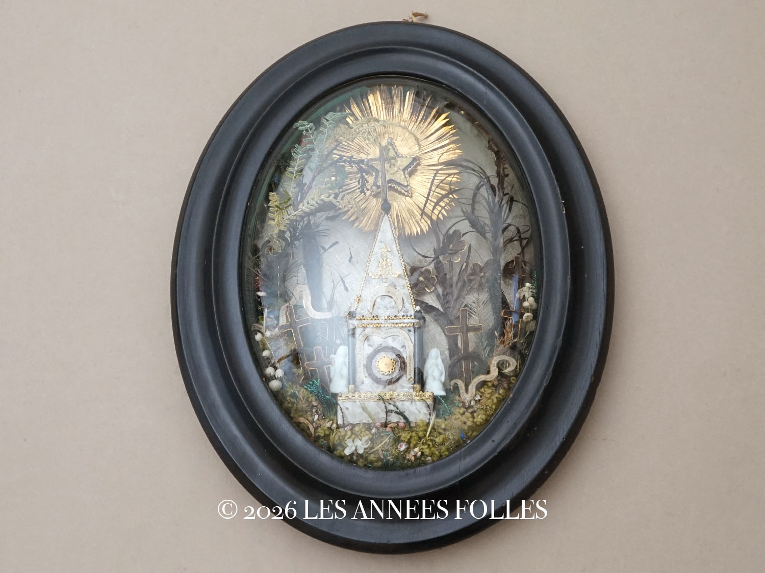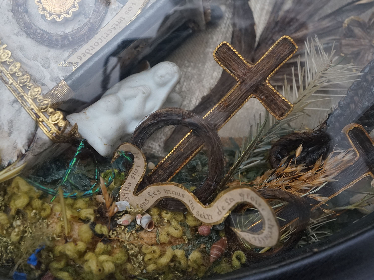 19世紀 アンティーク ルリケール 大きなガラスドーム 遺物 44.6×35cm