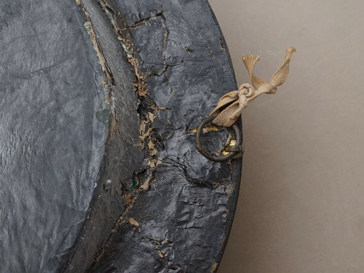黒い木製のフレームには、僅かに虫食い跡が見られます。