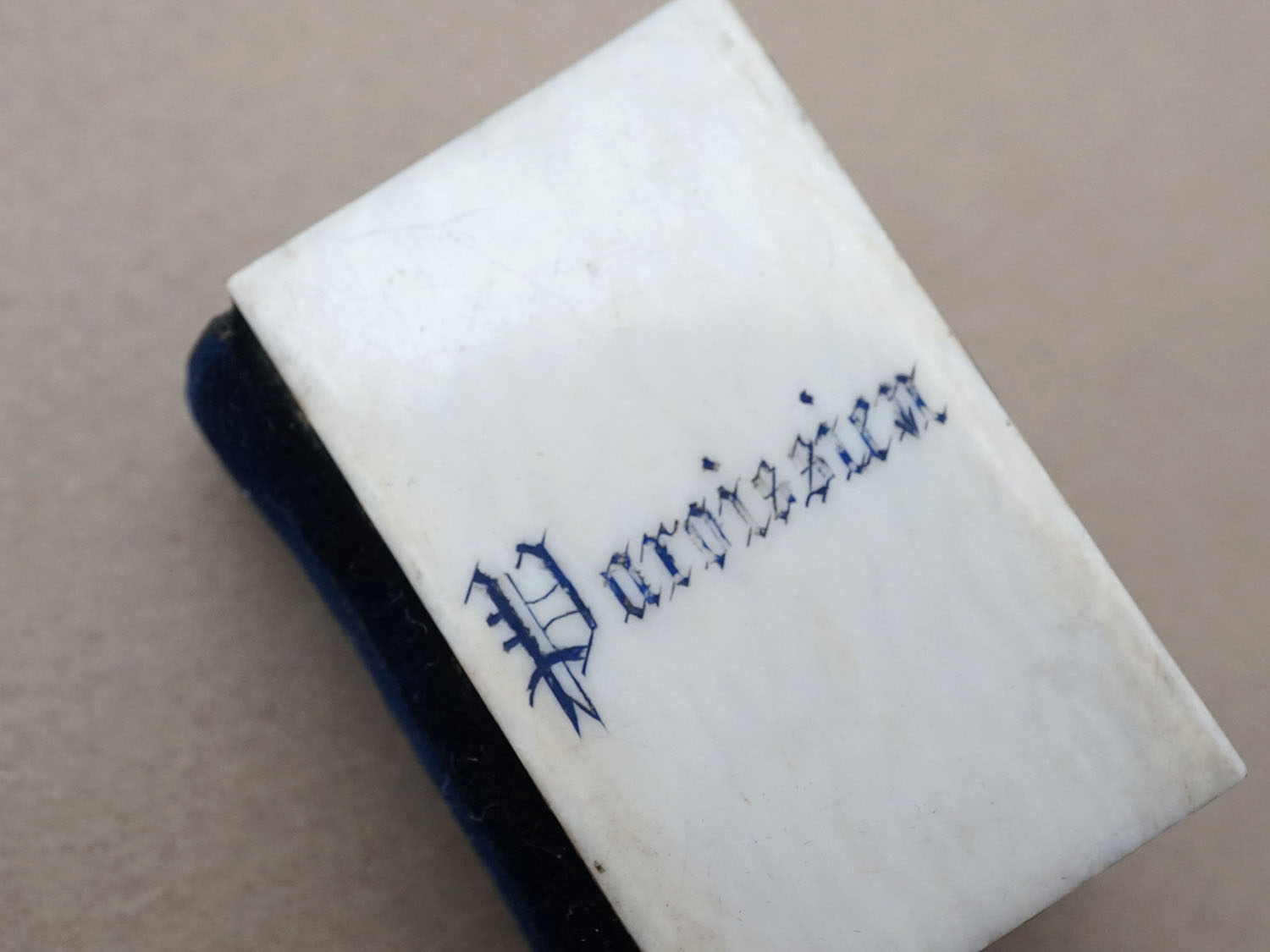19世紀 アンティーク ドール用 祈祷書 ボーン製 ダークブルーのベルベット ドールハウス PAROISSIEN