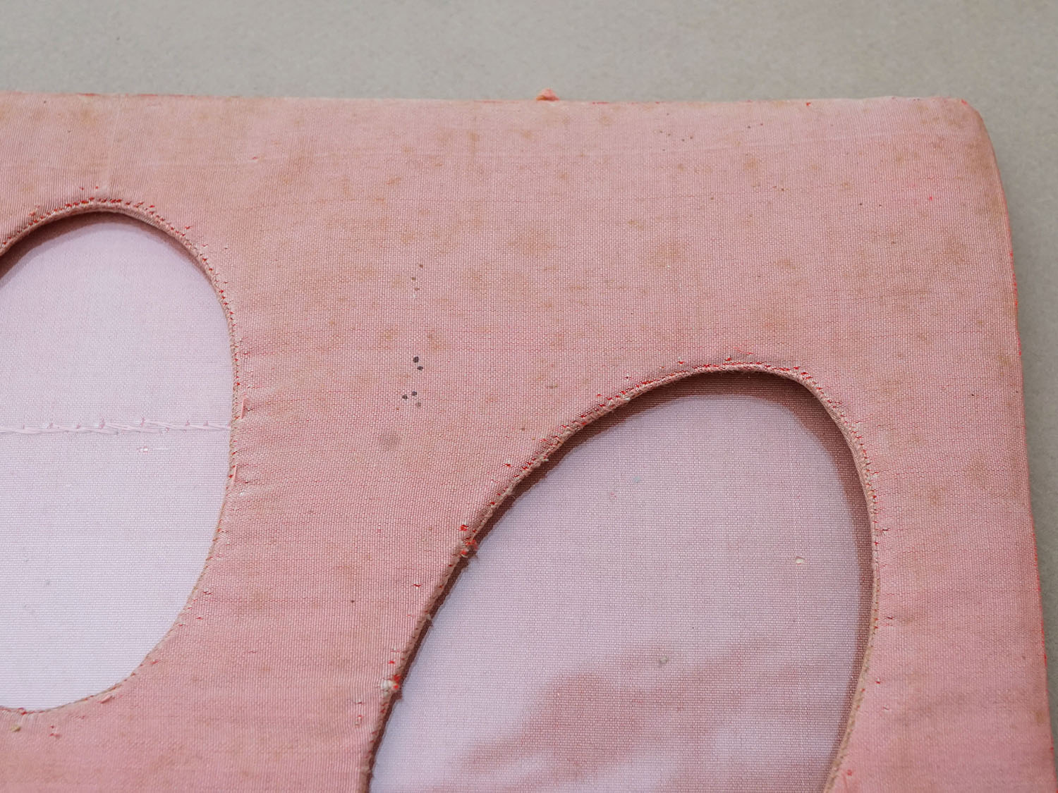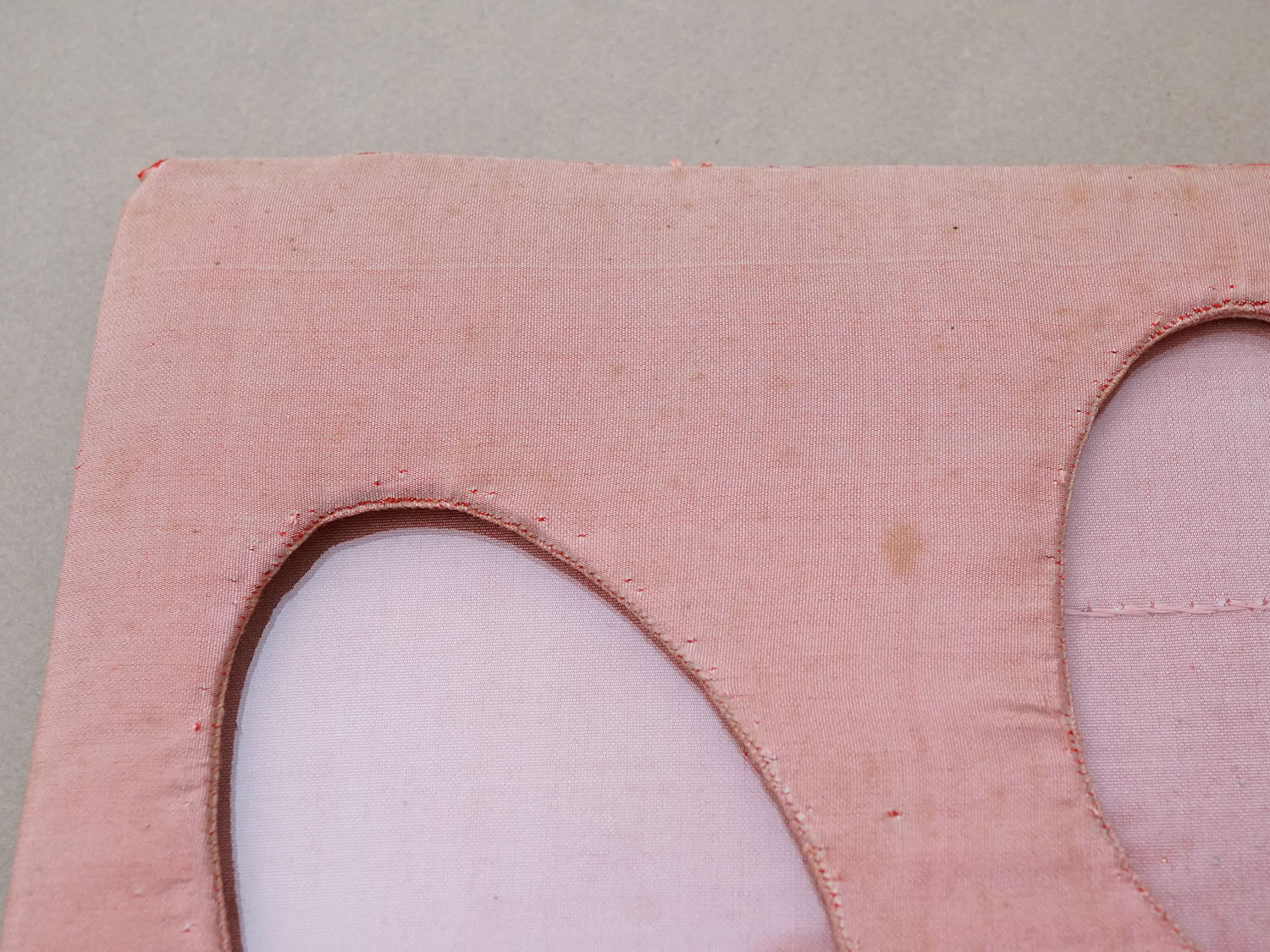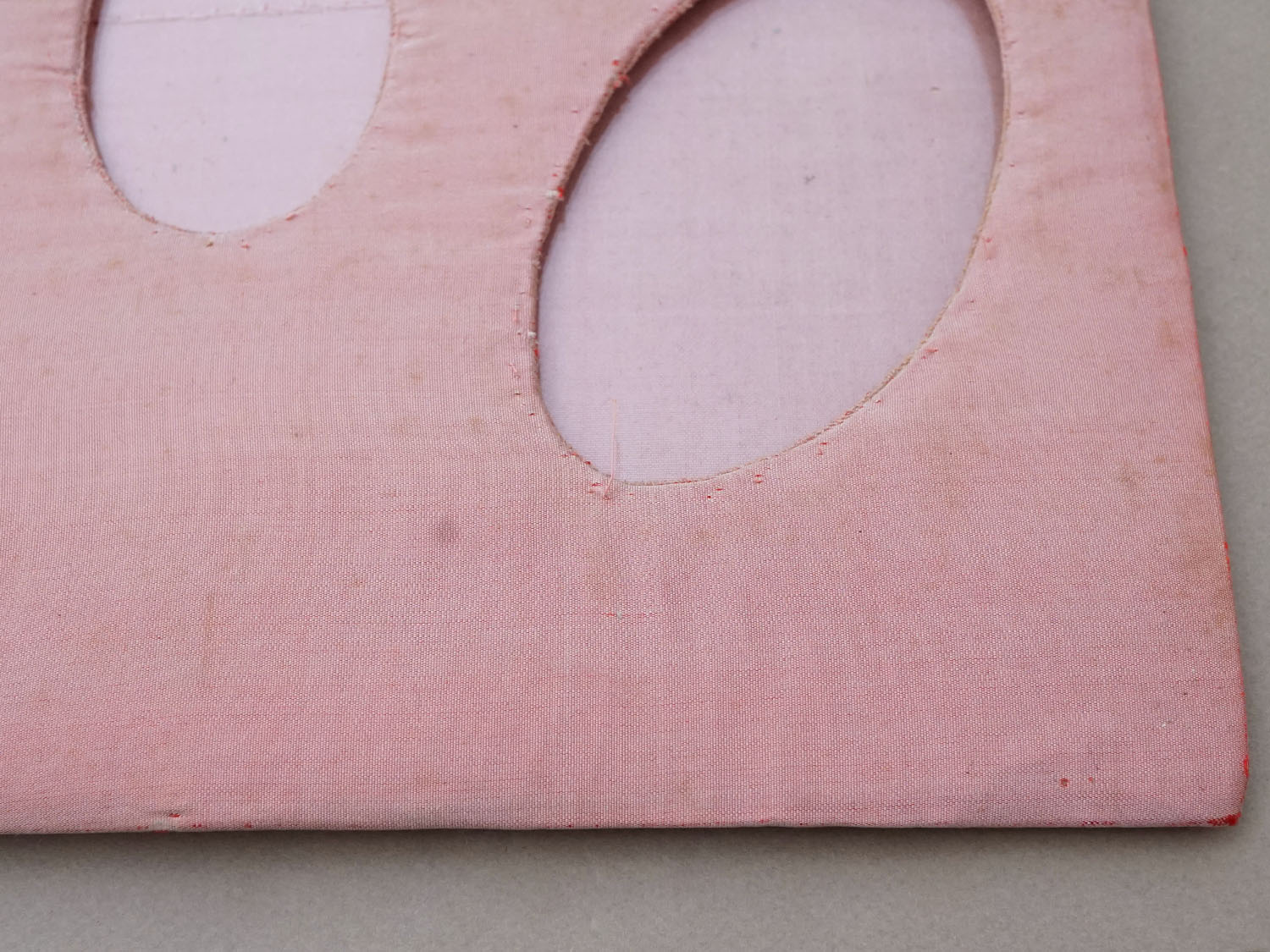 落ち着いピンクのシルク地には薄らとシミがございます。