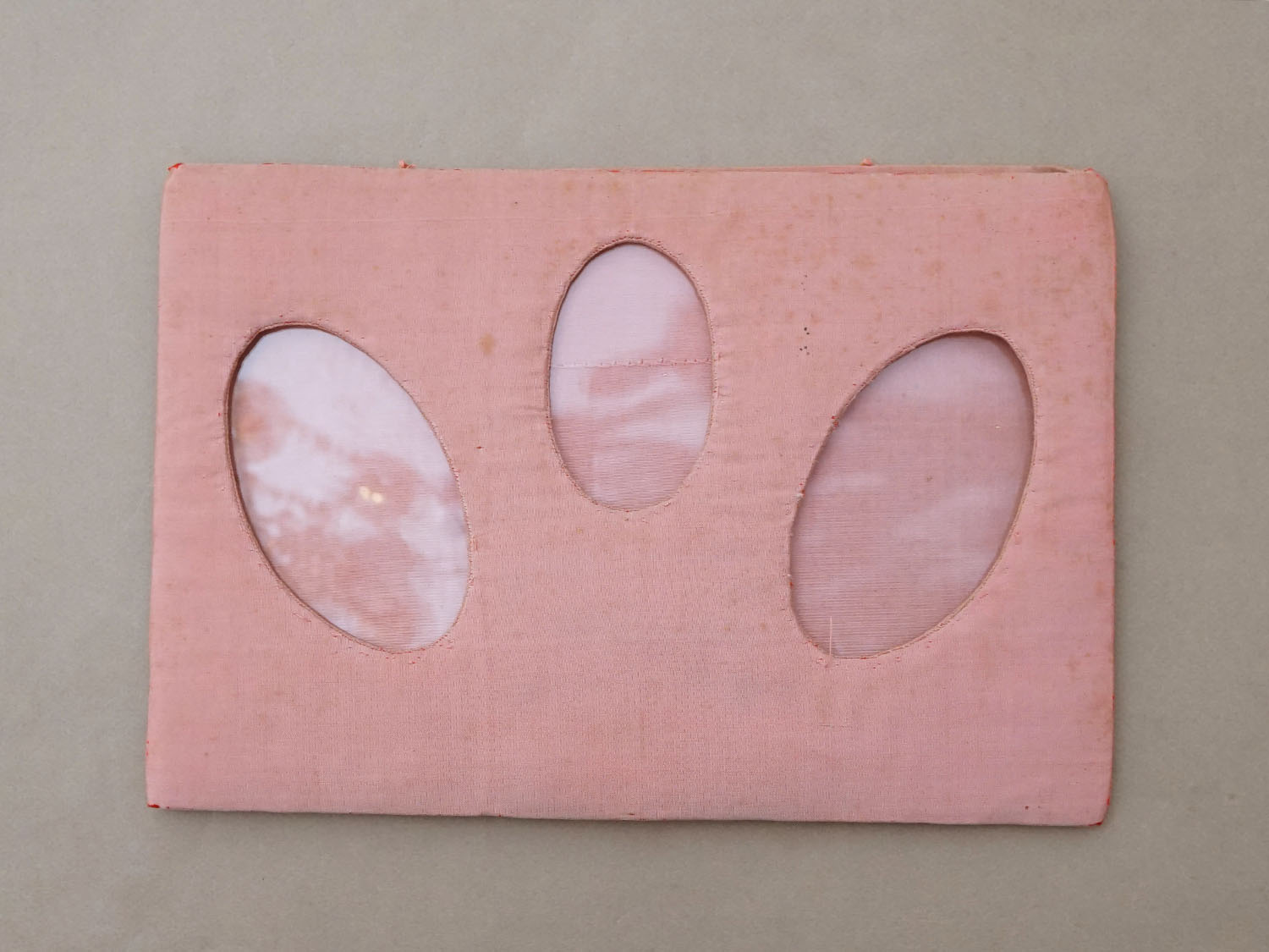 *蚤の市*アンティーク フォトフレーム シルク製 ピンク [AN1396]