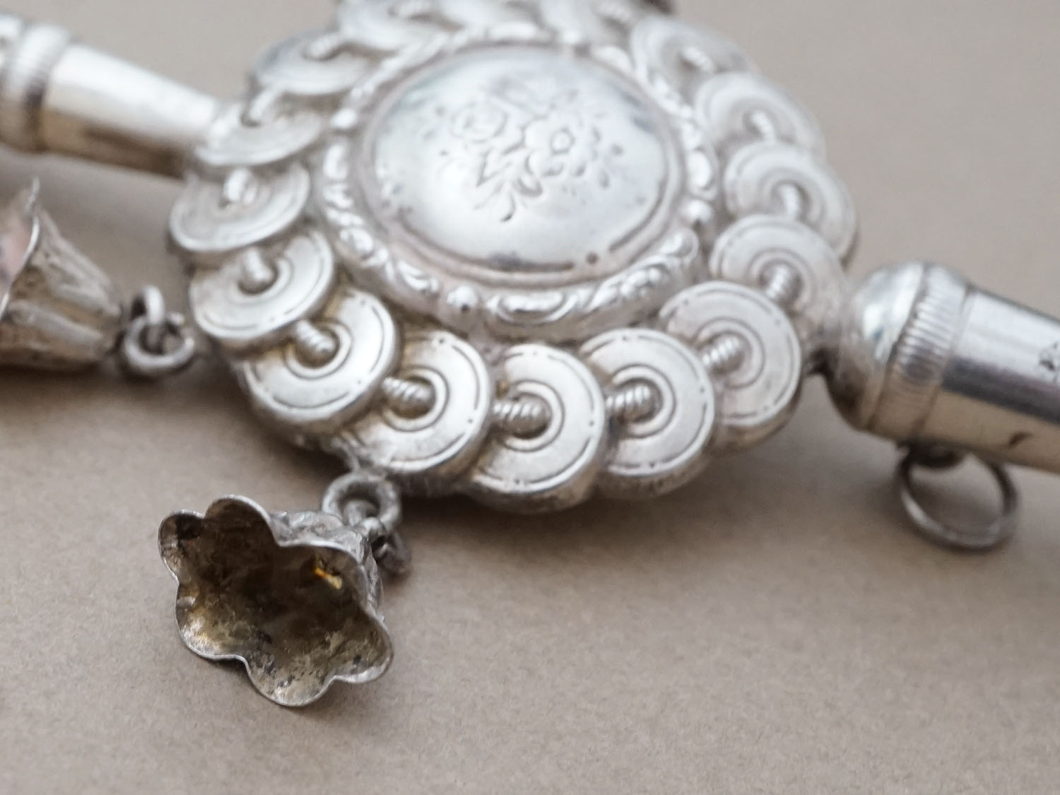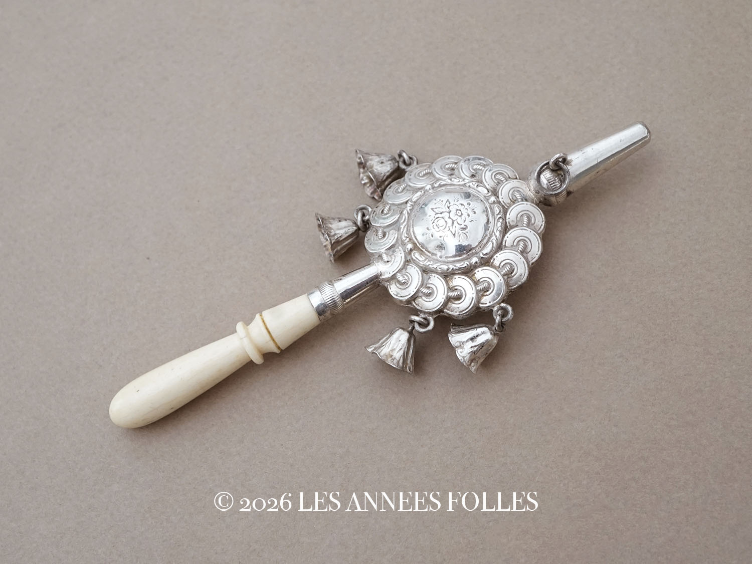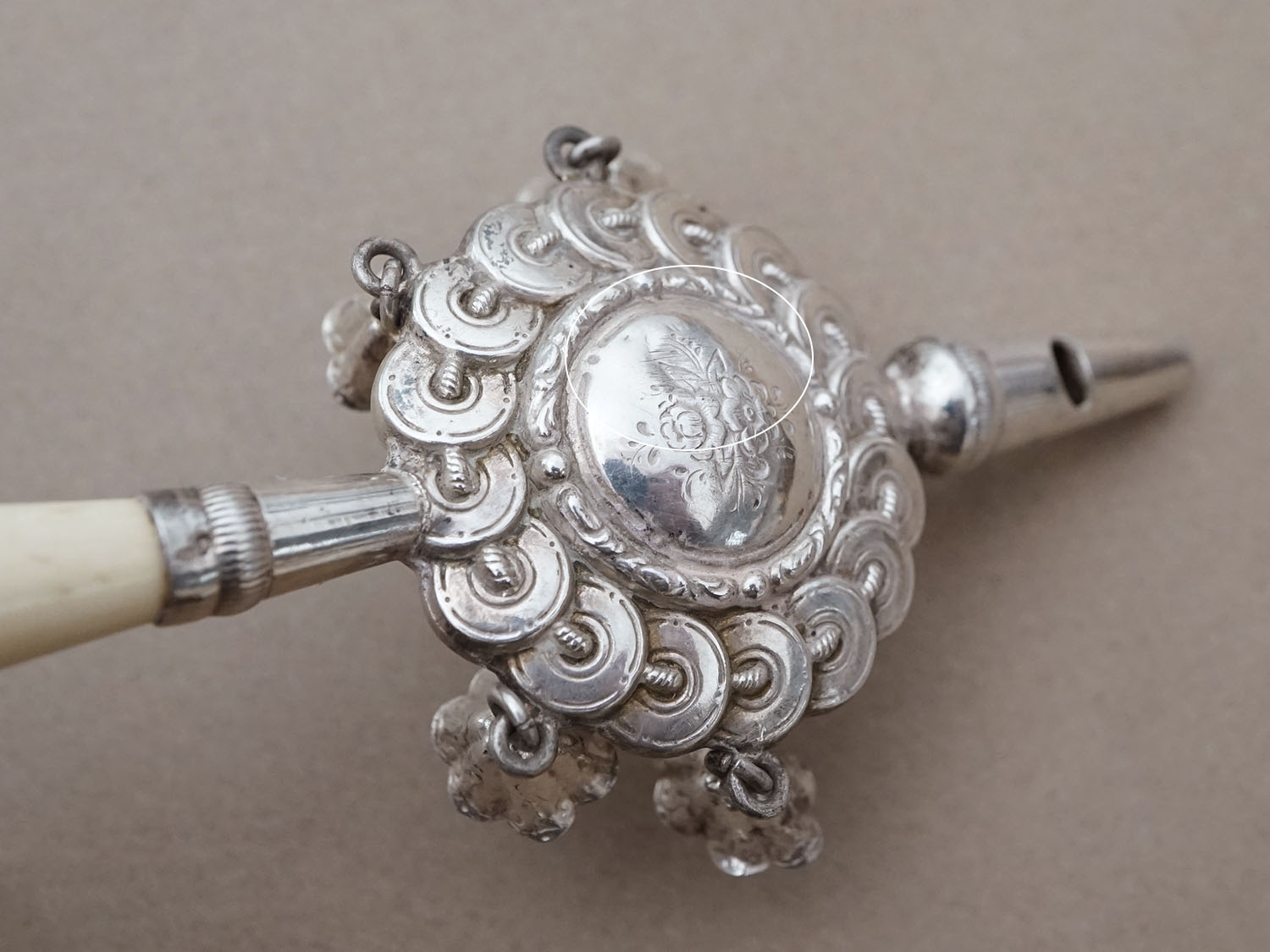 *蚤の市*19世紀 ナポレオン3世時代 アンティーク ラトル シルバー製 花模様