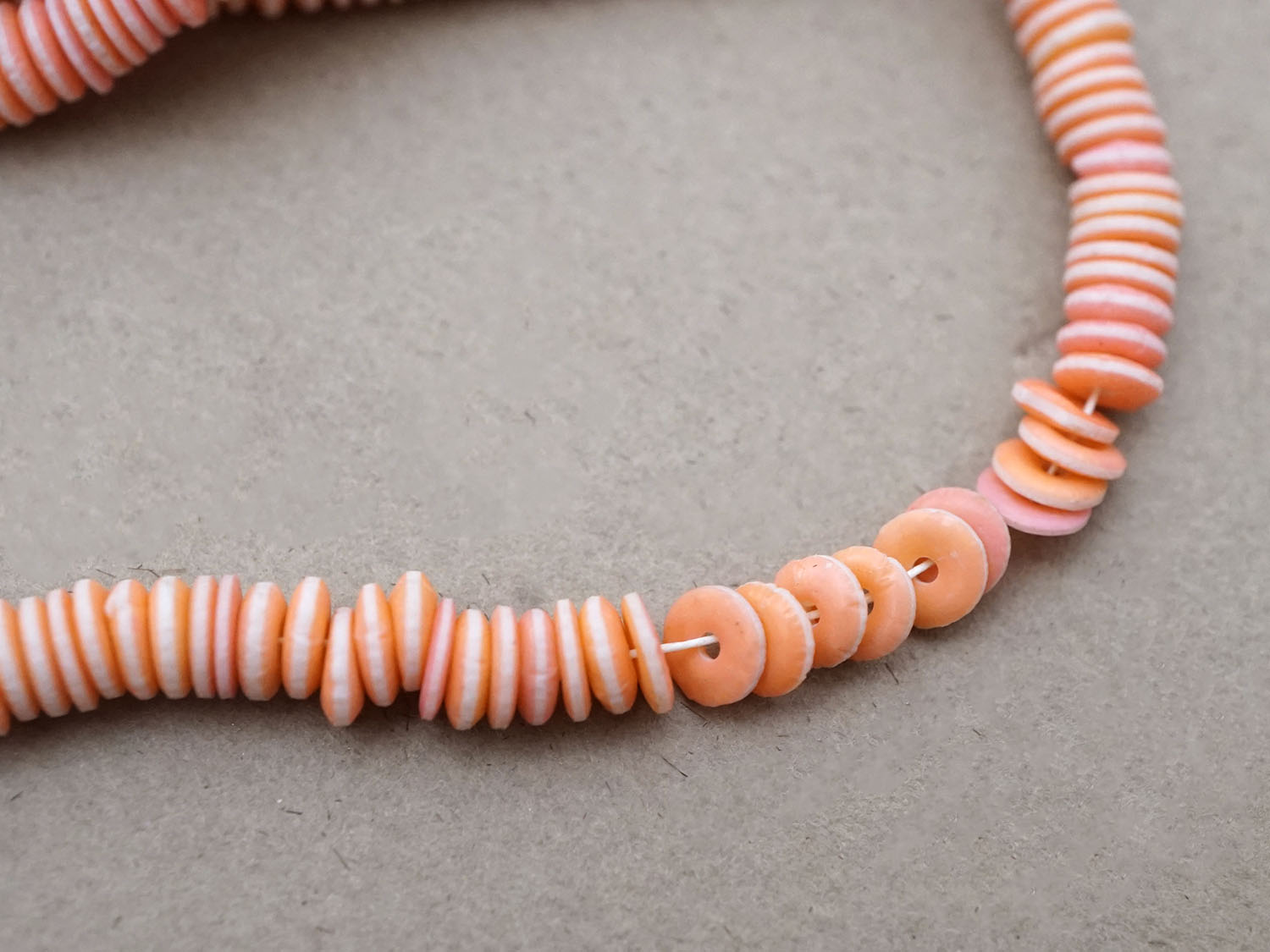 1束はサーモンピンクとオレンジが半々ずつ束ねられています。