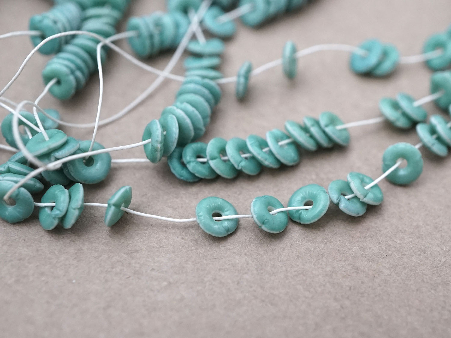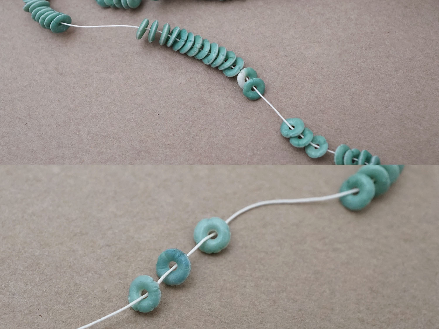 基本的には、ビーズの通った糸10本の束でのお届けです。