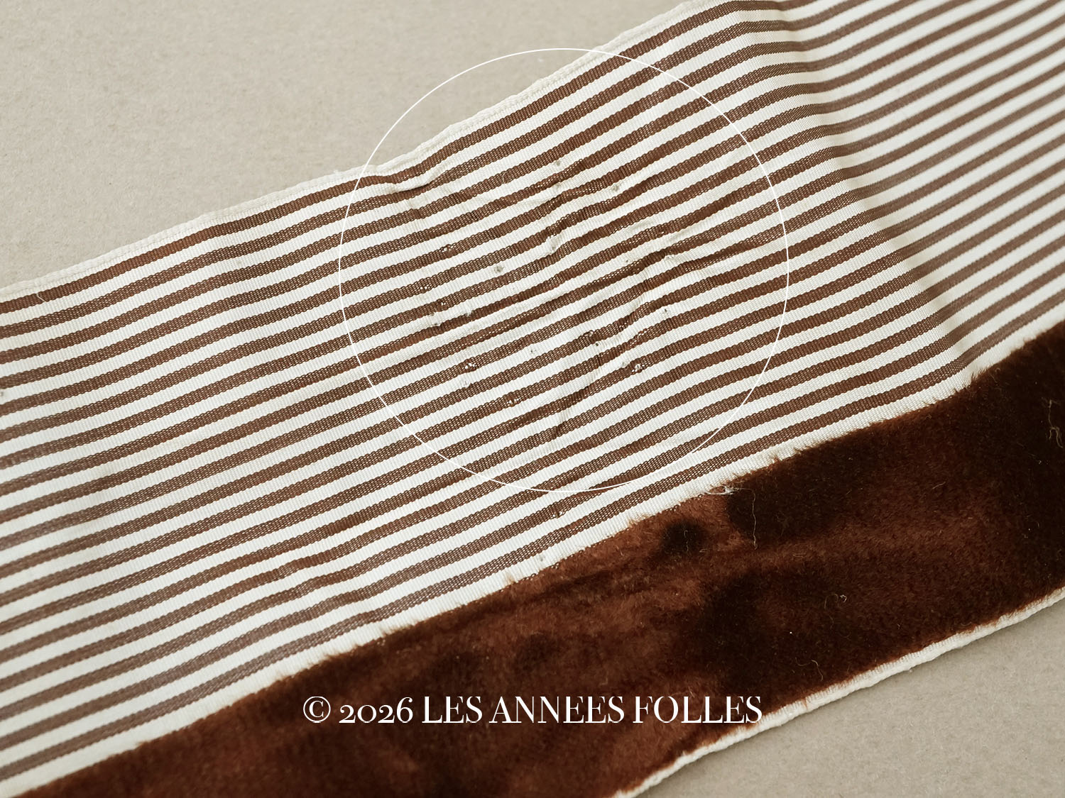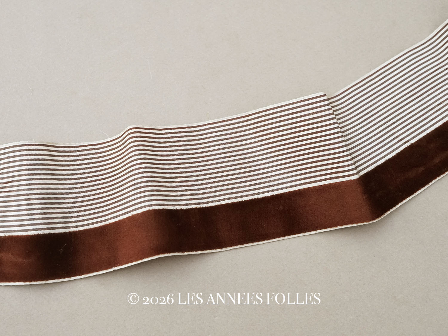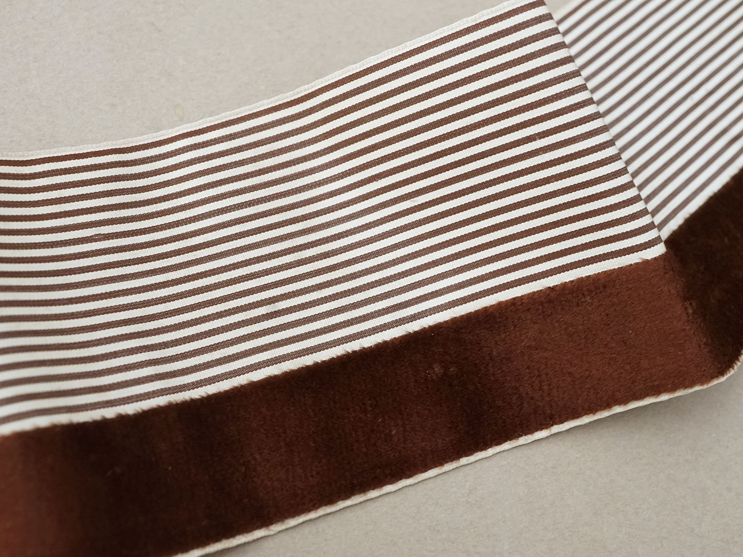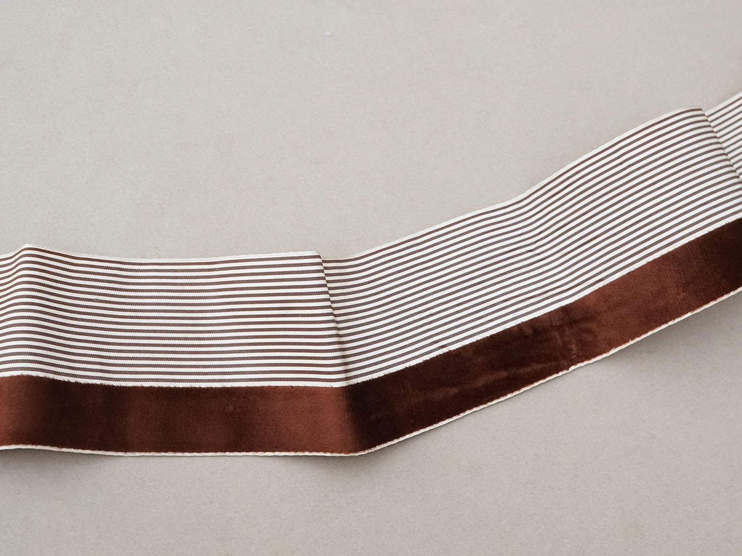 1900年頃 アンティーク シルク製 リボン ストライプ ブラウンのベルベット 2.4m