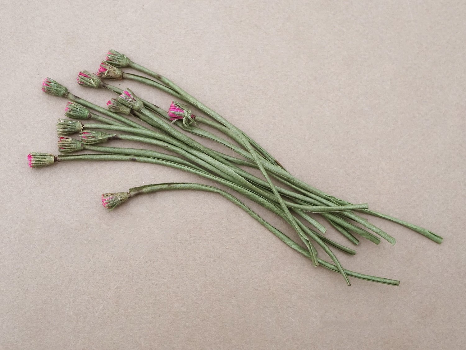 深い赤紫色のデイジーの蕾の布花12ピースのセットです
