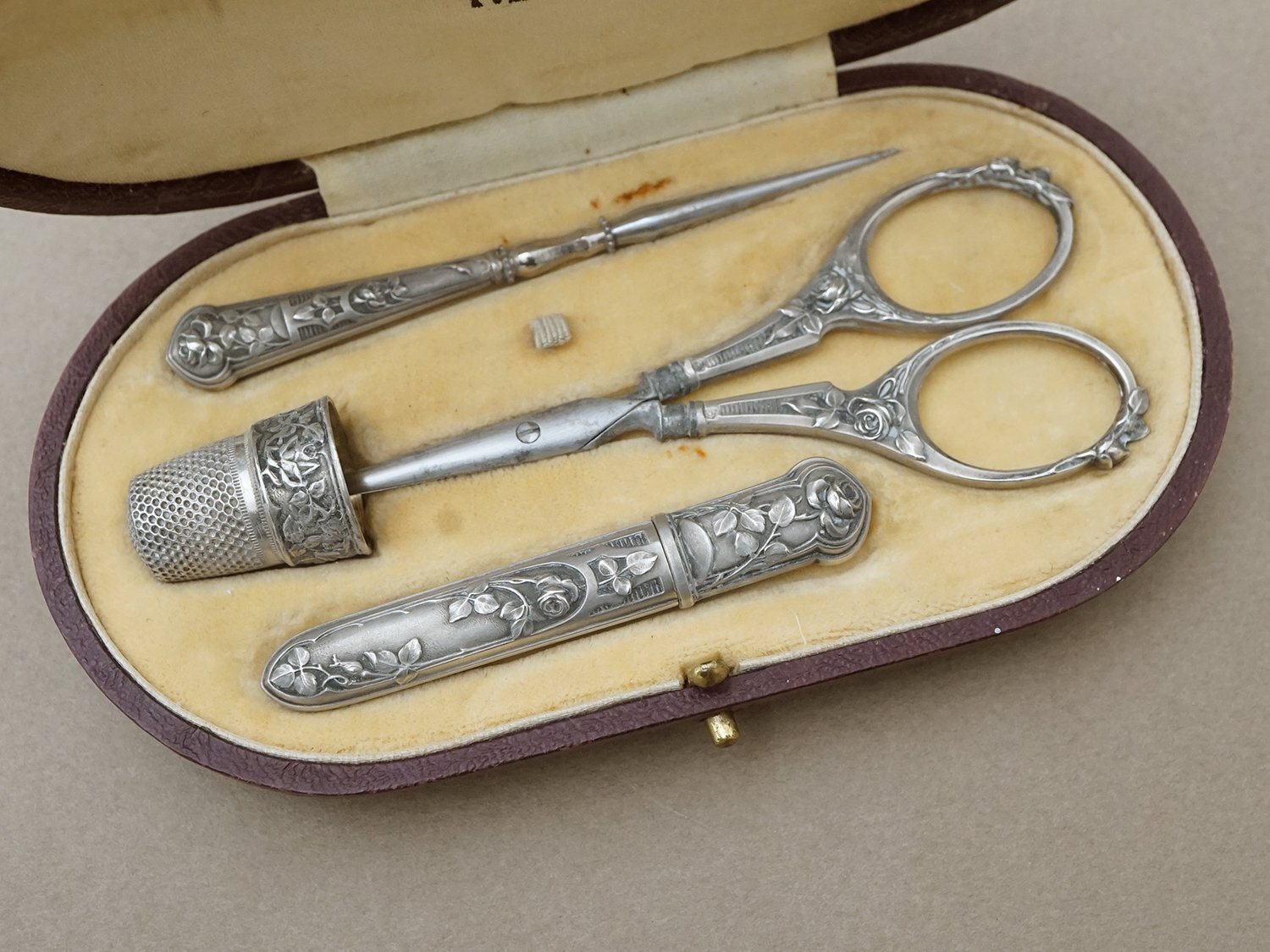 アンティーク シルバー製 薔薇模様 裁縫道具セット