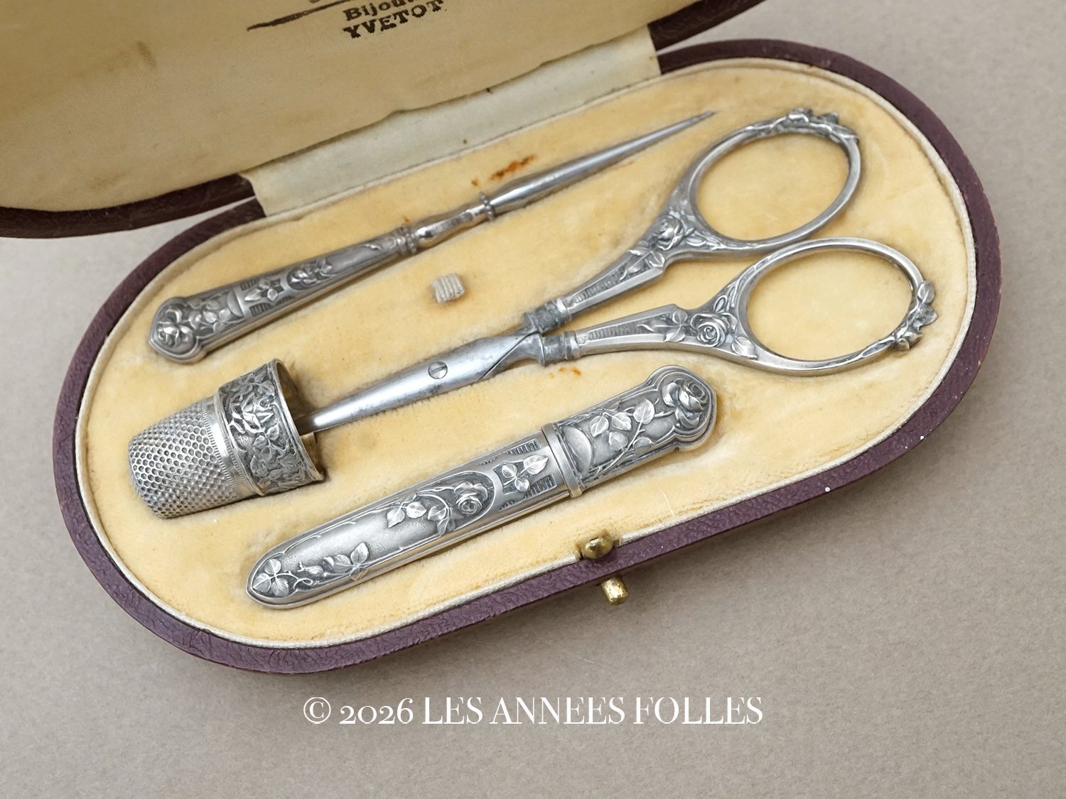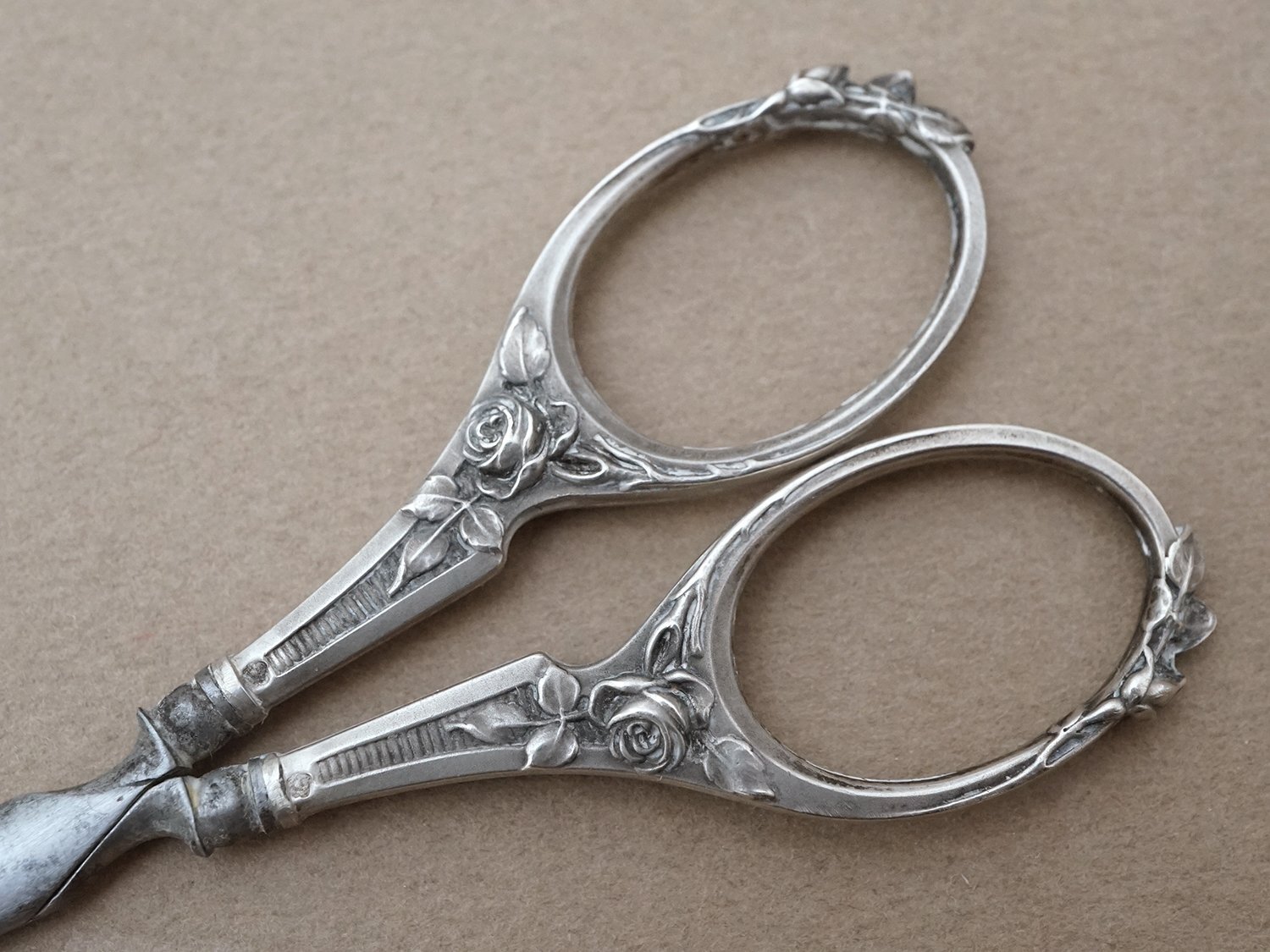 アンティーク シルバー製 薔薇模様 裁縫道具セット [AM16154]
