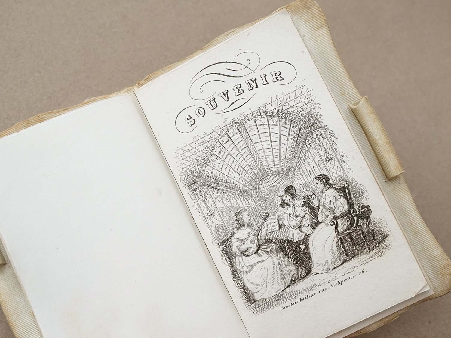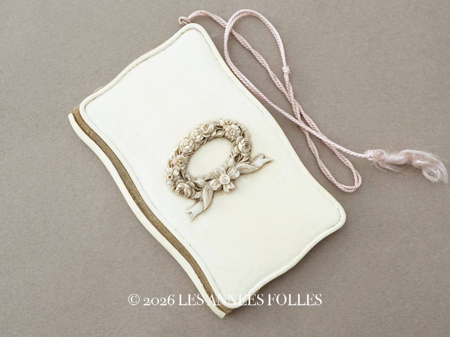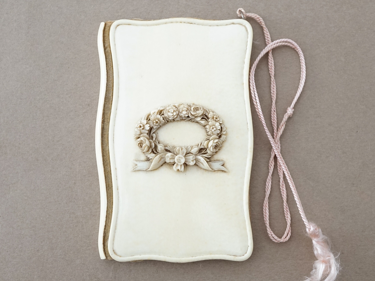 19世紀 舞踏会の手帳 ペンシル付 薔薇&リボンのリース カルネ・ド・バル