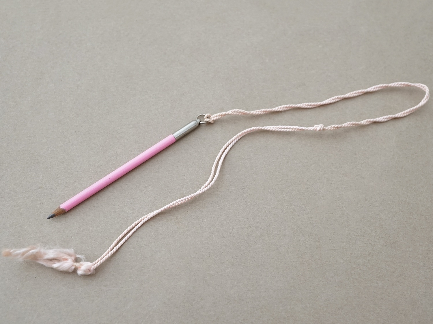 ピンクのシルク製の紐が付いた鉛筆がセットになっています。