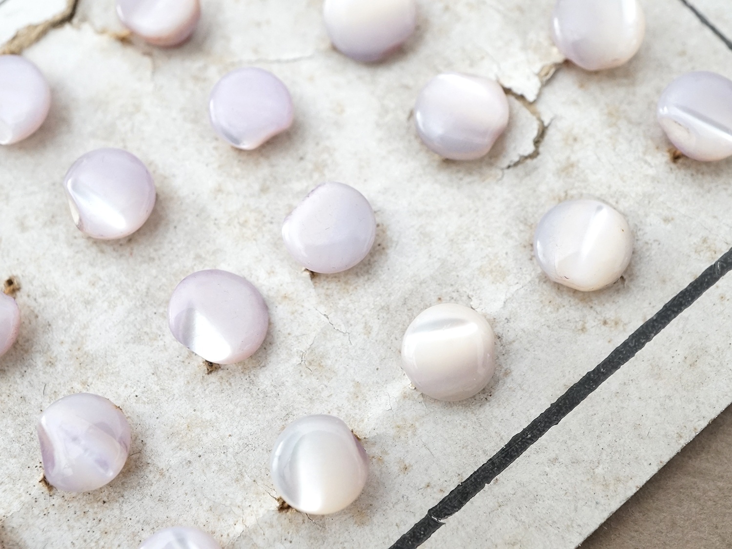 マザーオブパール(真珠が生み出される貝殻)製のボタン24ピースのセットです。