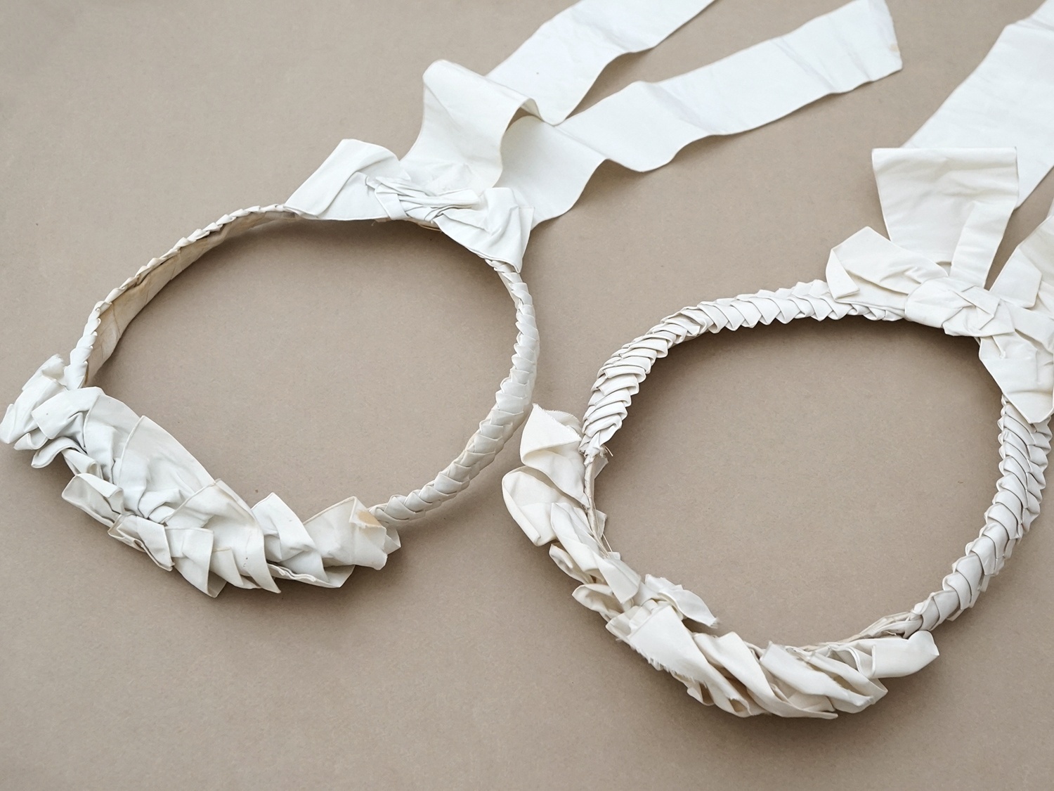 どちらのティアラのリボンにも、多少の汚れが見られます。