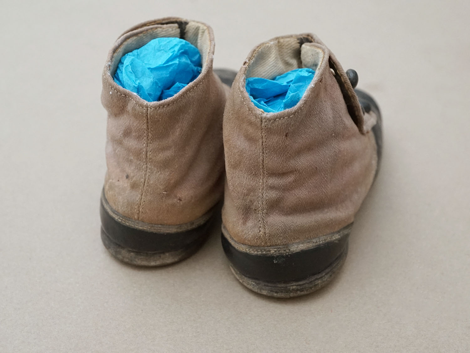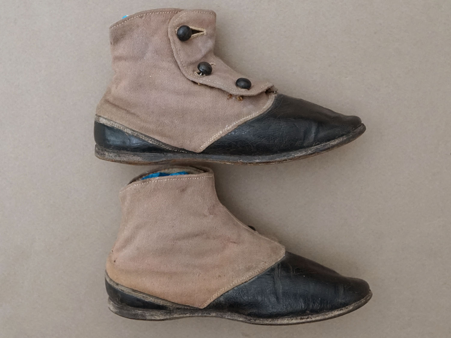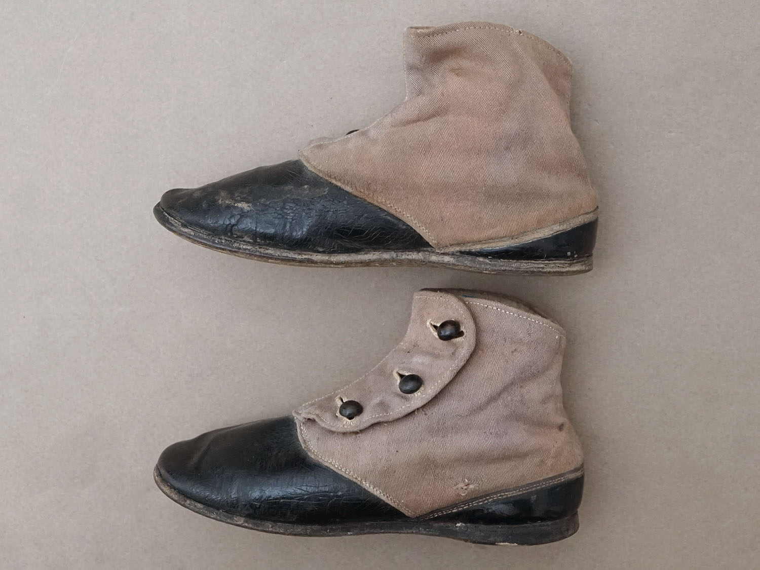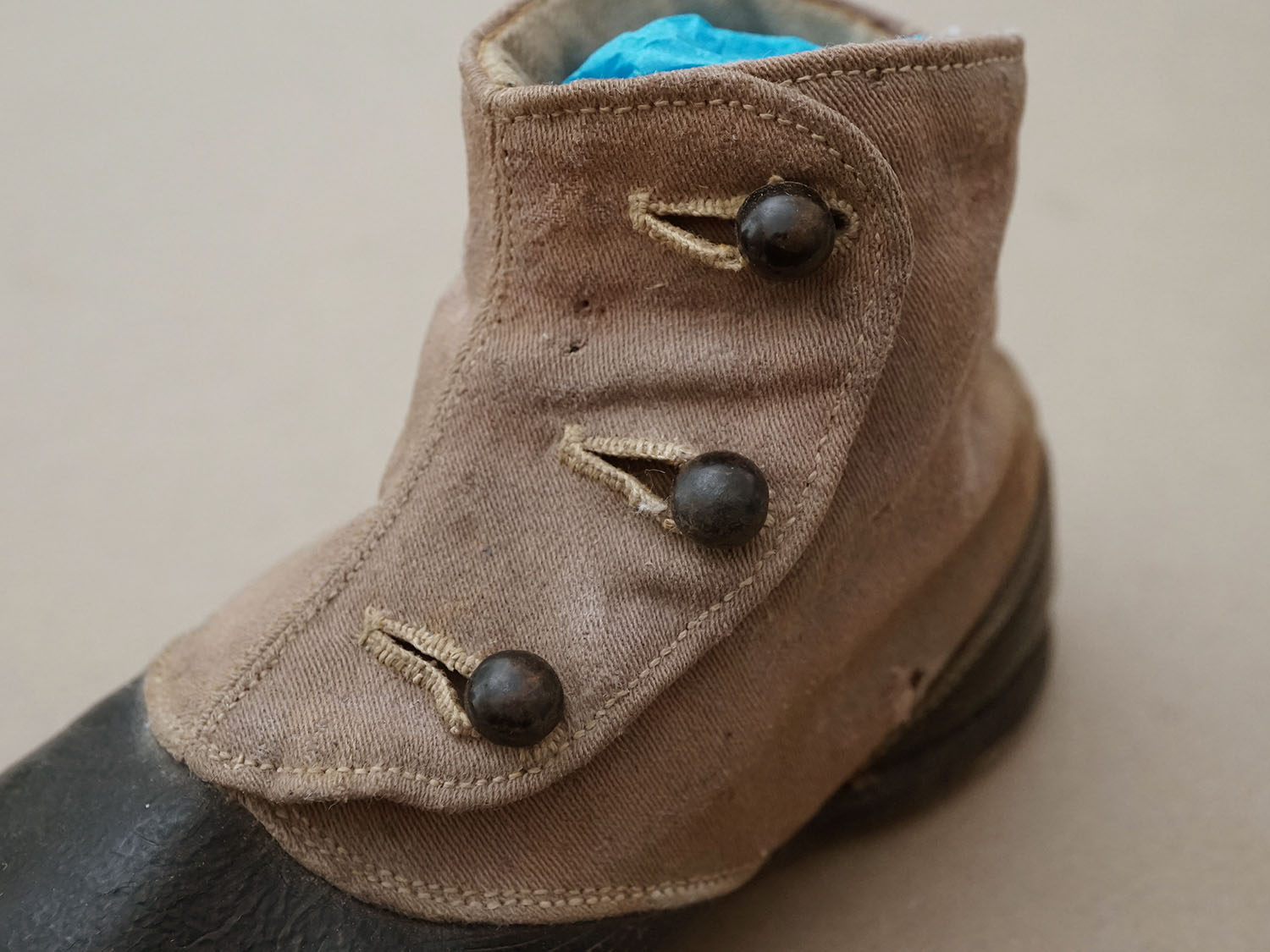 1900年頃 アンティーク ボタンアップ ベビーシューズ レザー&コットン製 ココアブラウン&ブラック
