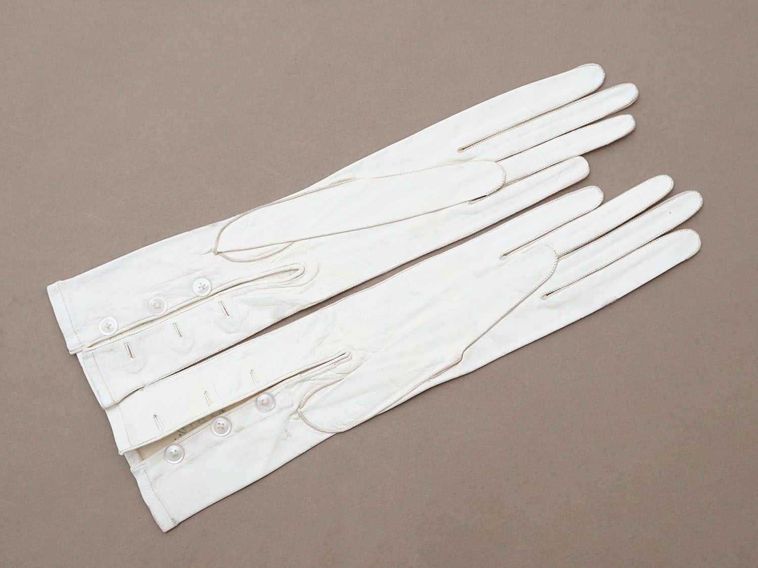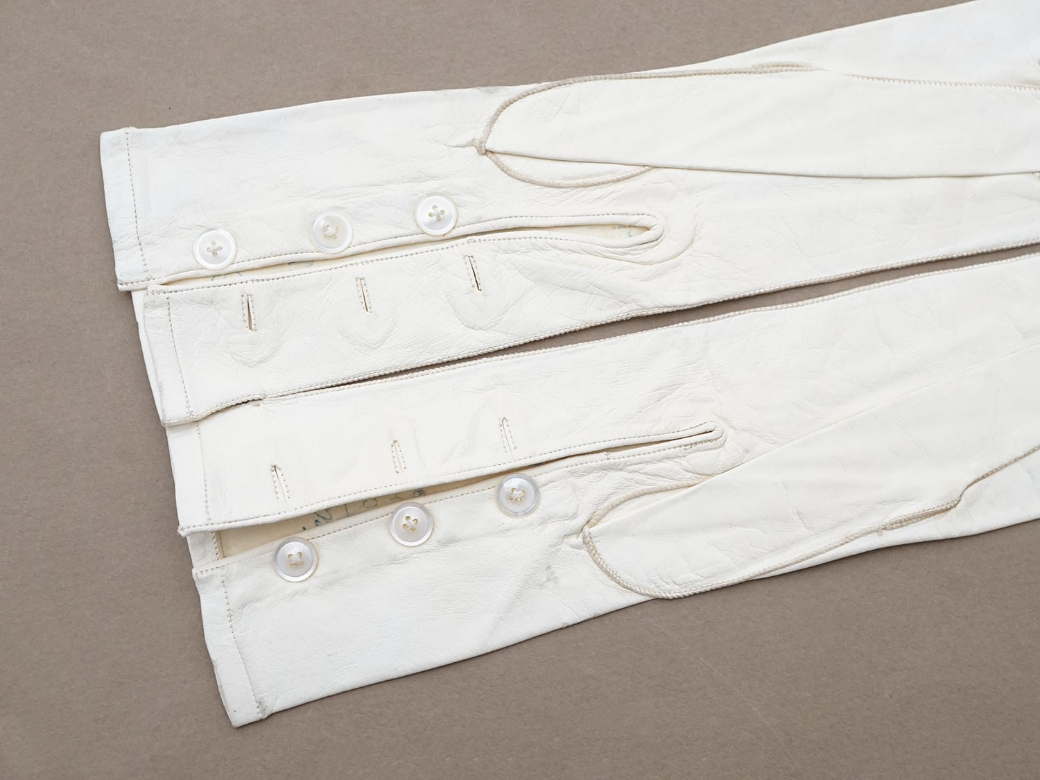 1900年頃のオフホワイトで本革製の結婚式用グローブです。
