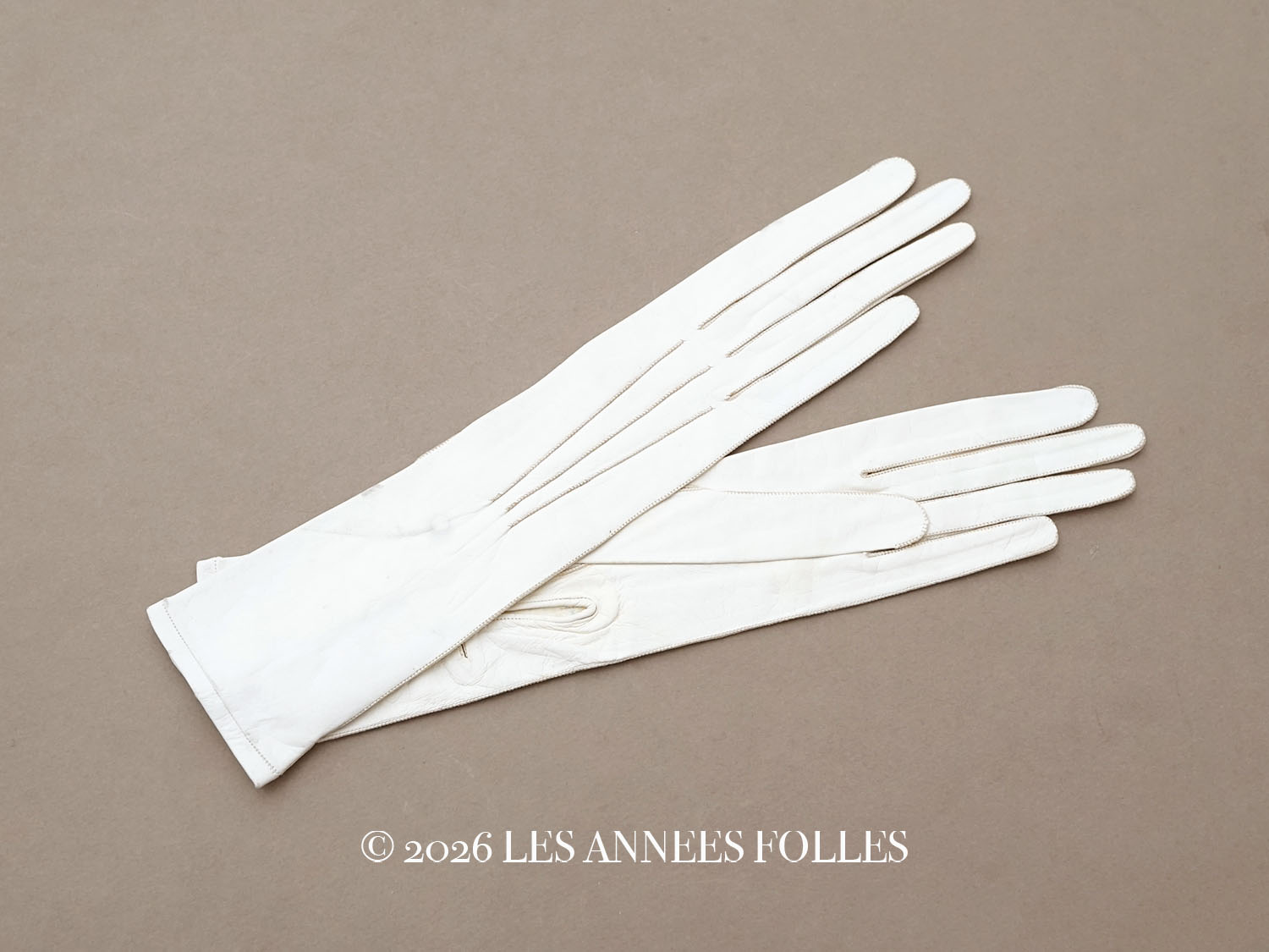 未使用 1900年頃 アンティーク 本革製 極細 結婚式のグローブ ボンマルシェ百貨店 オフホワイト レザー 手袋 - AU BON MARCHE -