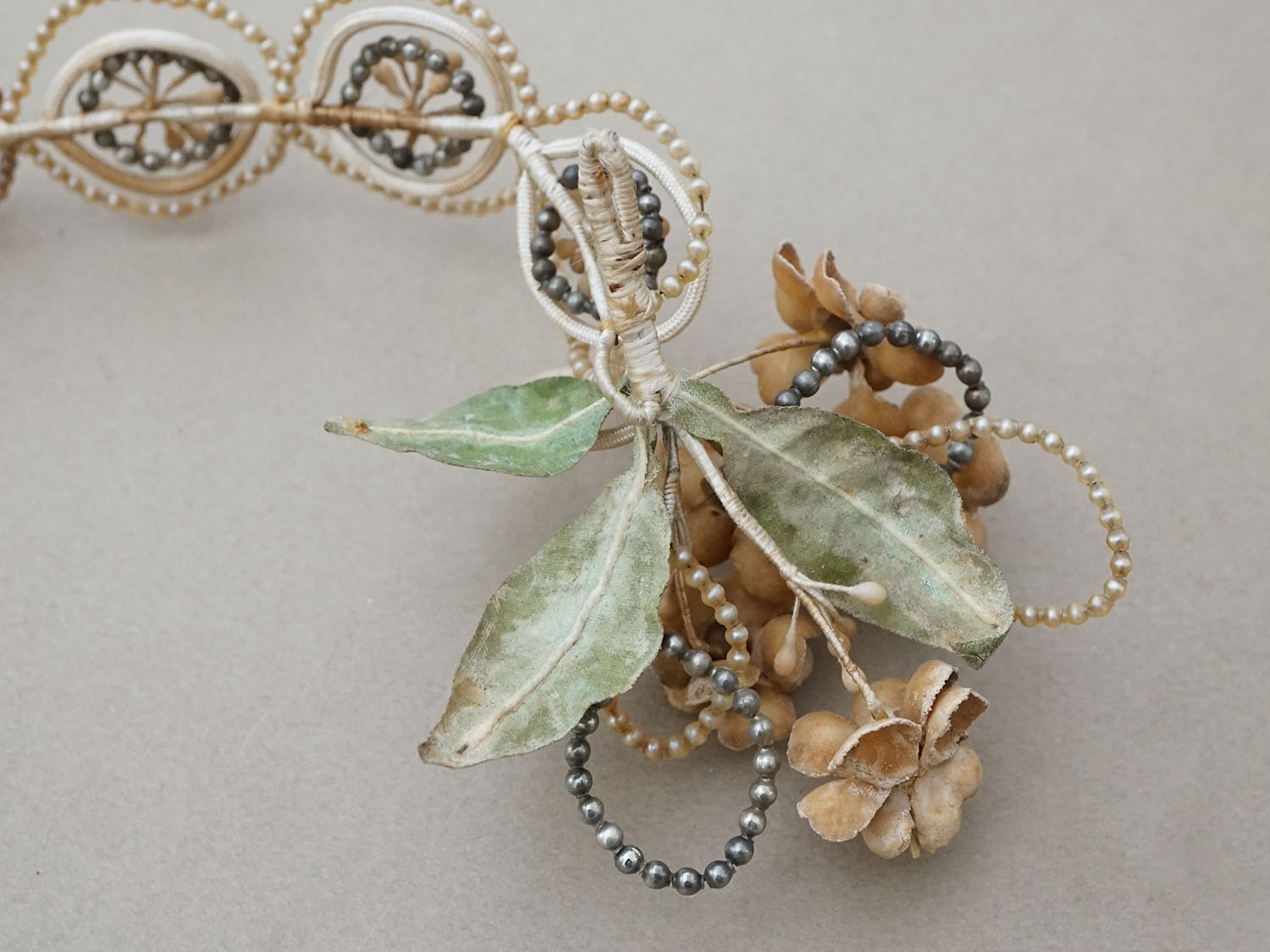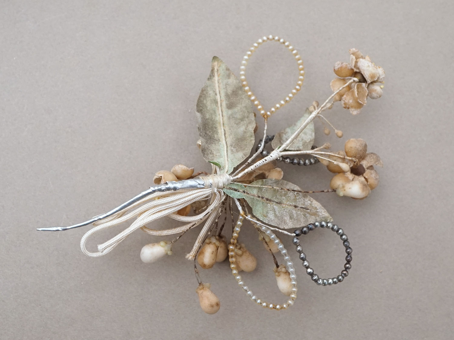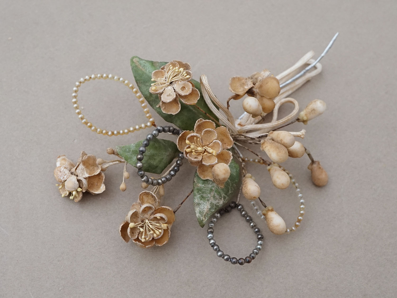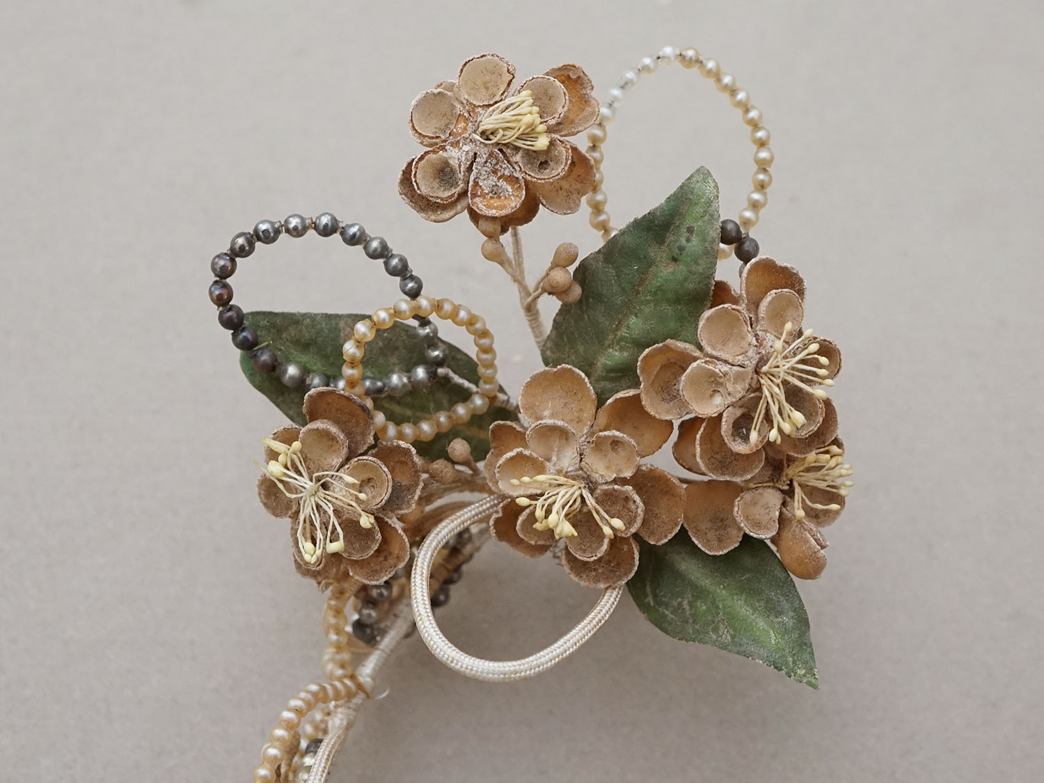 *蚤の市*アンティーク パールとワックスフラワーのティアラ & ブローチのセット ウェディング [AM16182]
