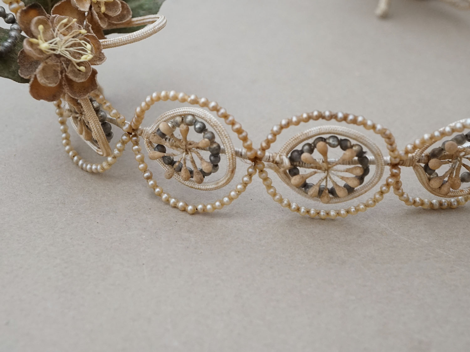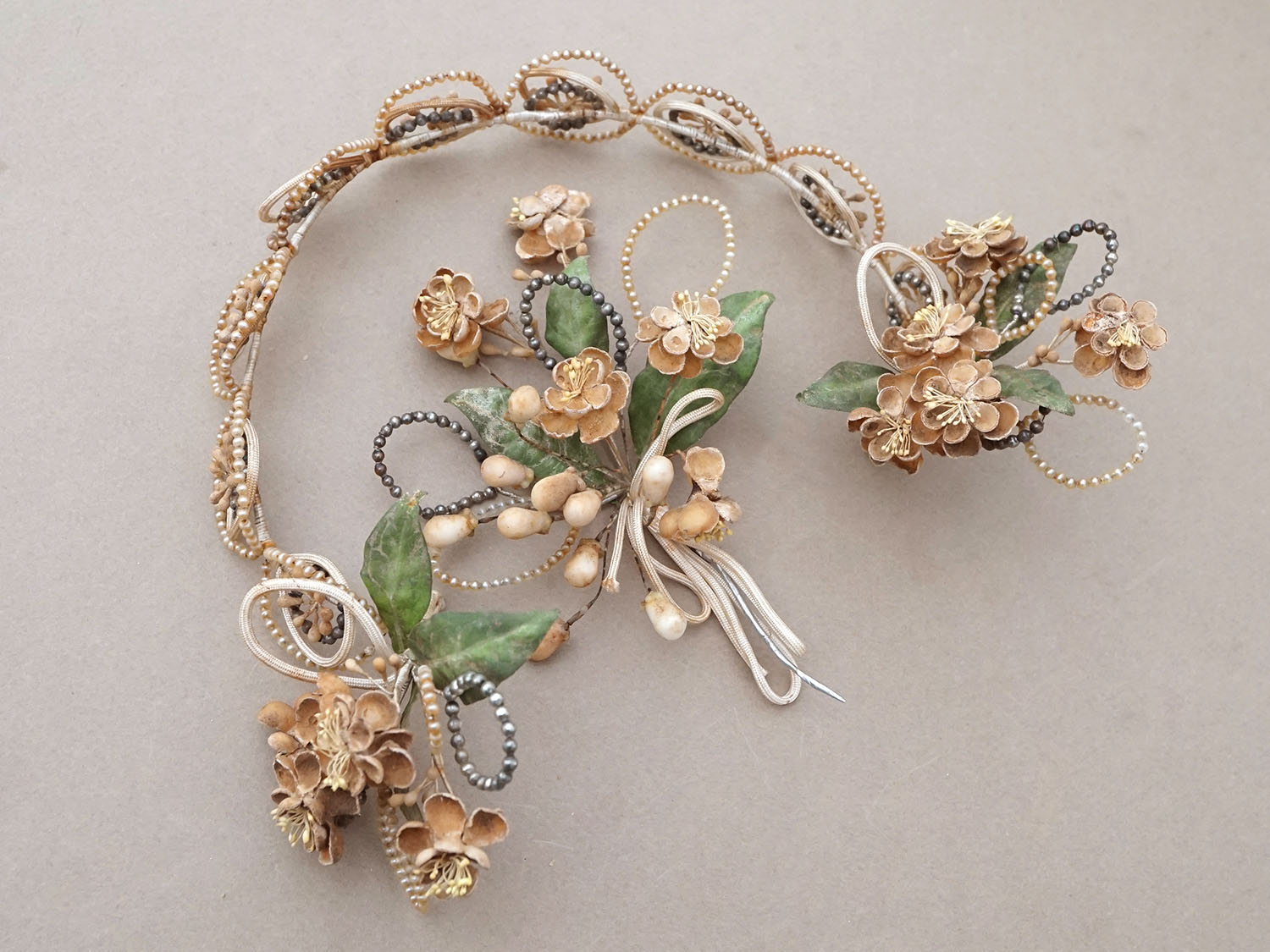 *蚤の市*アンティーク パールとワックスフラワーのティアラ & ブローチのセット ウェディング