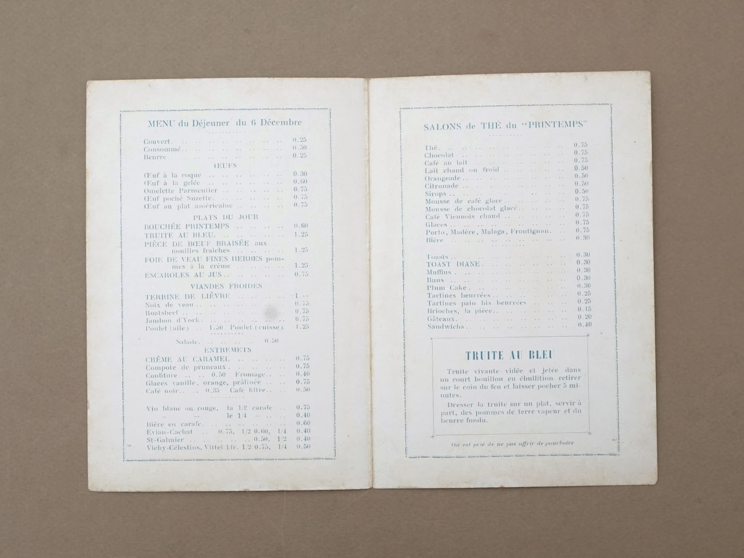 アンティーク プランタン百貨店 ティーサロンのメニュー SALON DE THE DU "PRINTEMPS"- AU PRINTEMPS -