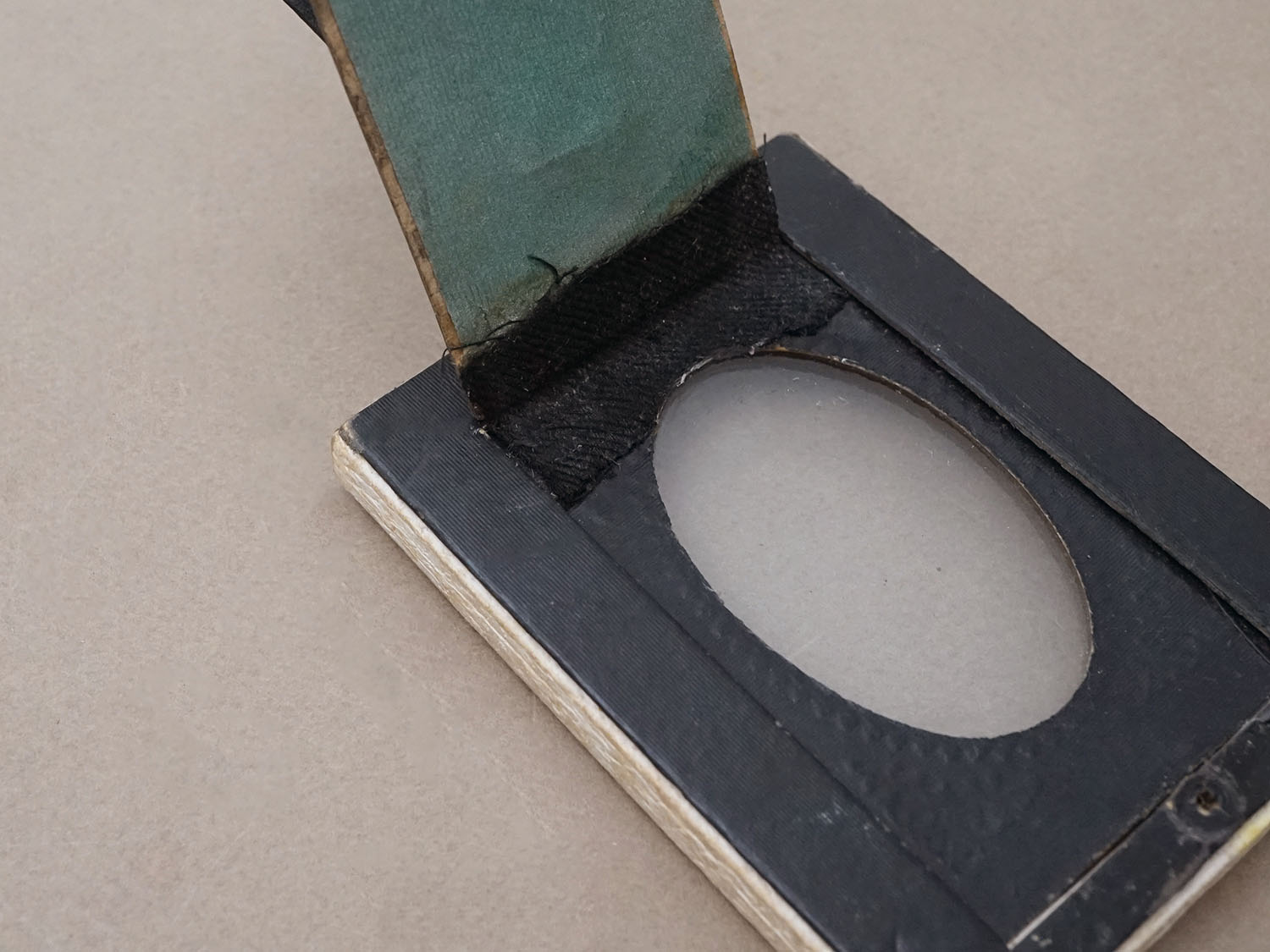 裏側の蓋になる板と本体を繋げていたパーツが無くなっています。