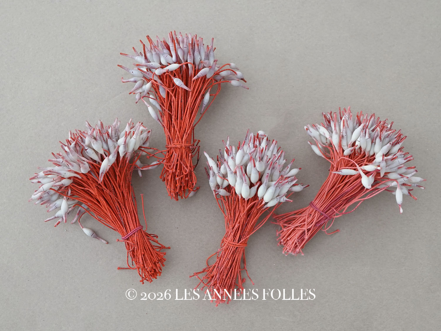 *蚤の市セット*アンティーク ペップ 赤&ライトグレー 花芯 4点セット [AN1429]