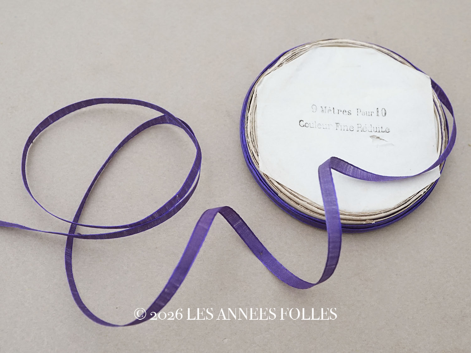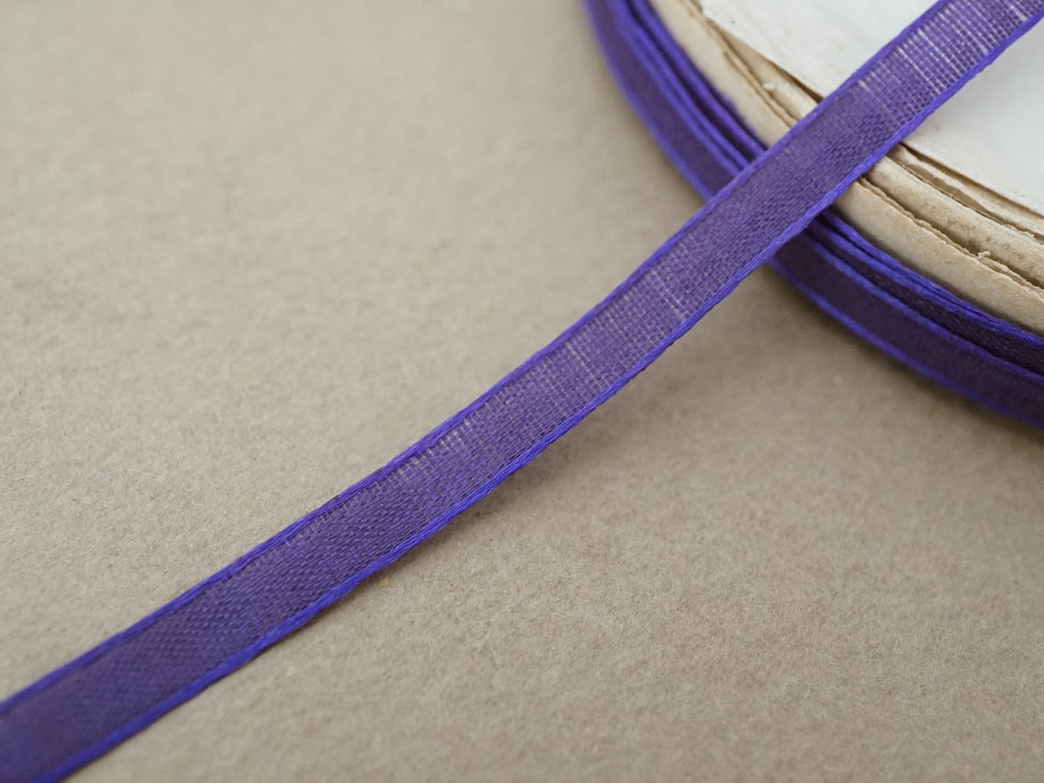 19世紀 アンティーク 極細 シルクリボン 8.5m 4mm幅 紫 & 青紫