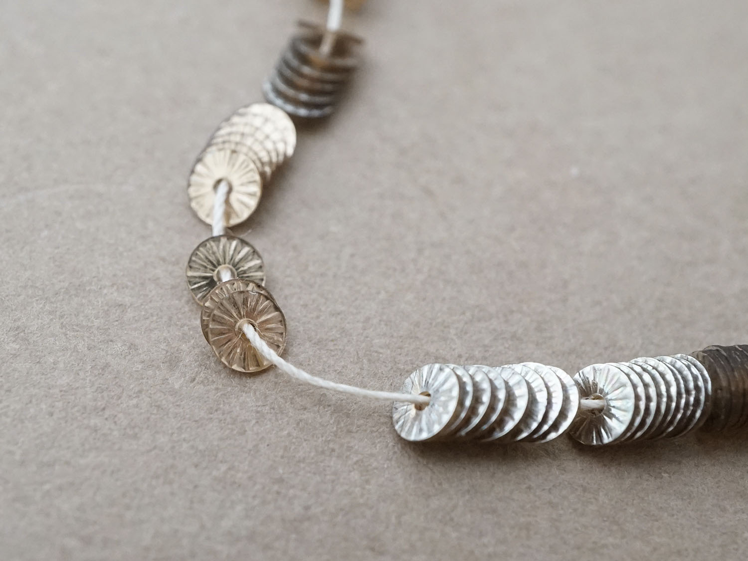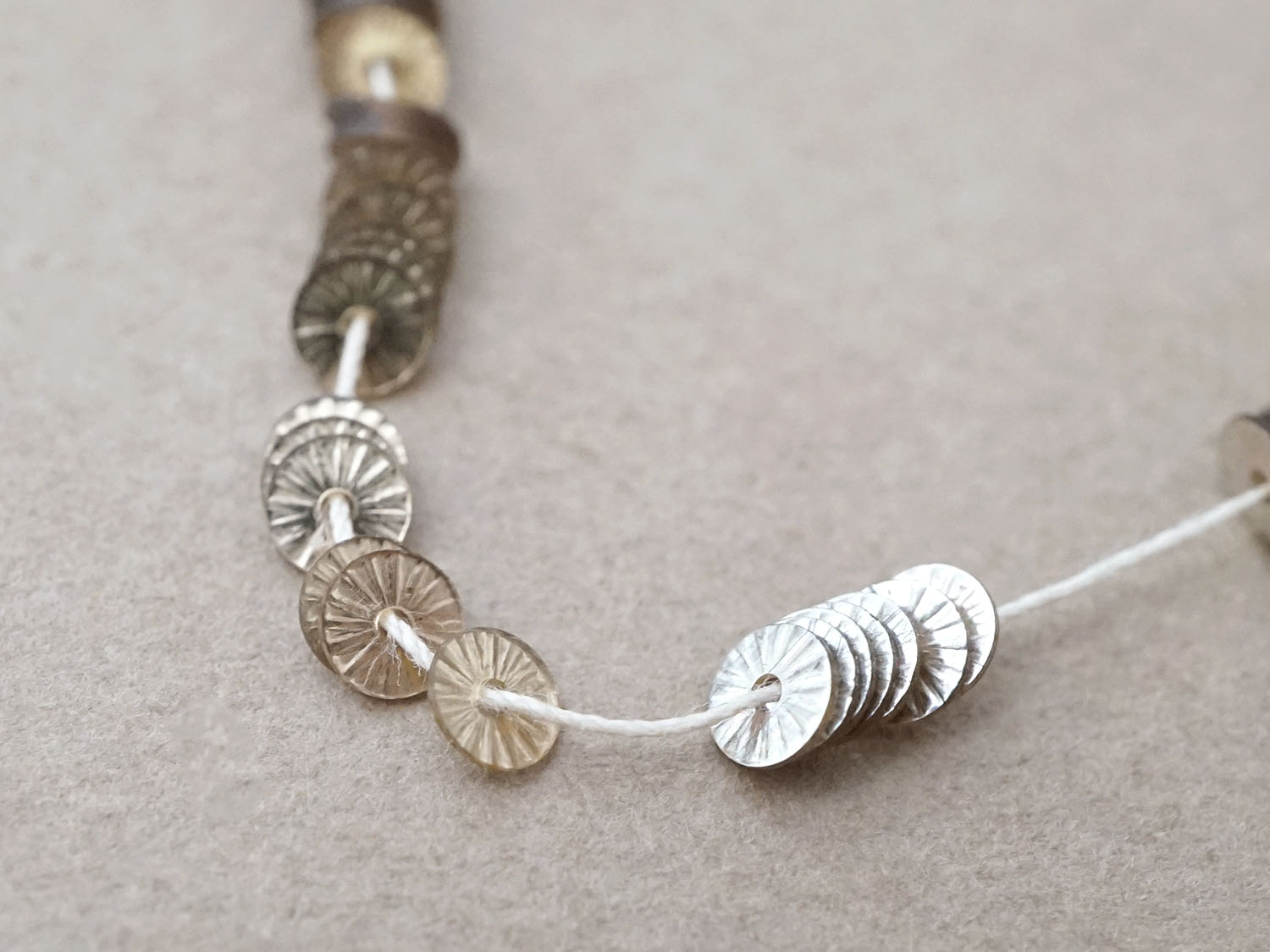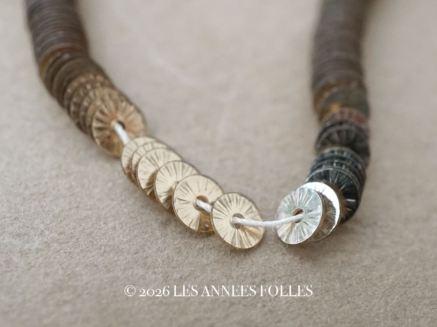 アンティーク ゼラチン製 スパンコール ソレイユ 4mm シルバー & シャンパンゴールド ダブルフェイス