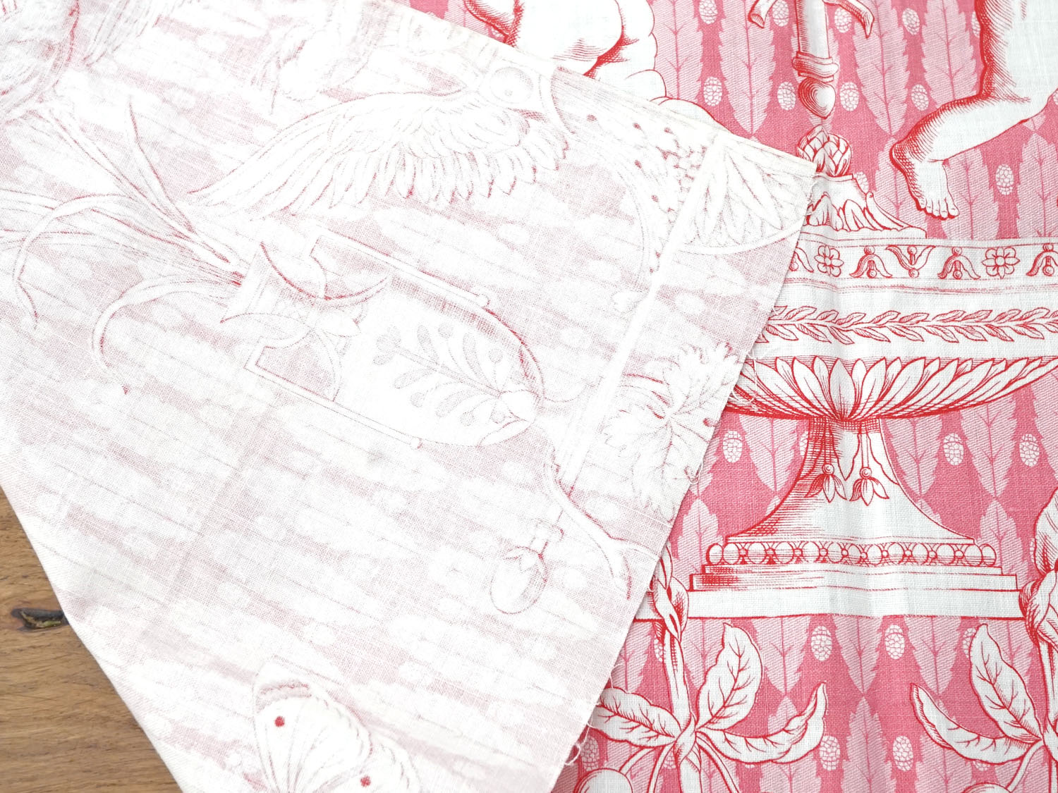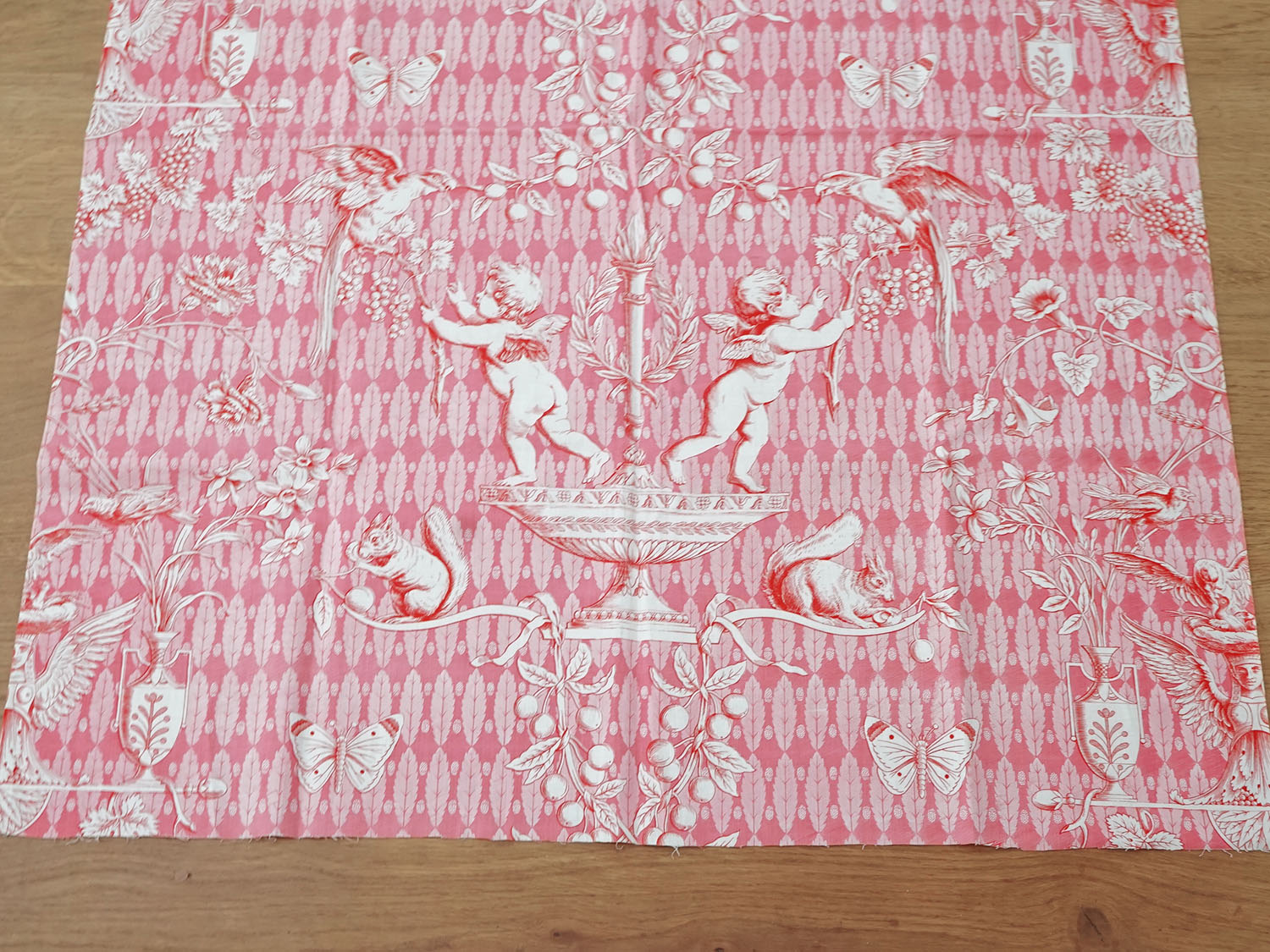 未使用 1900年頃 アンティーク 天使&栗鼠&蝶々 コットン製ファブリック 200×78cm [AM16208]